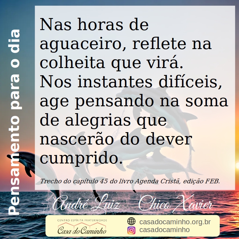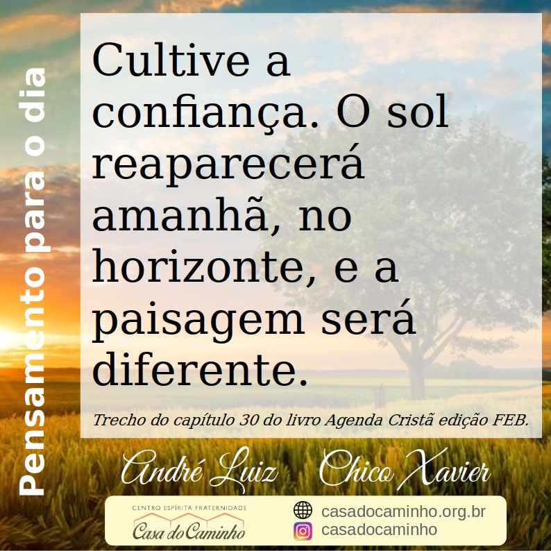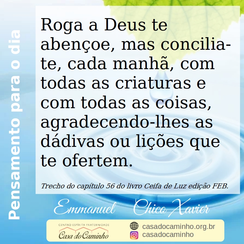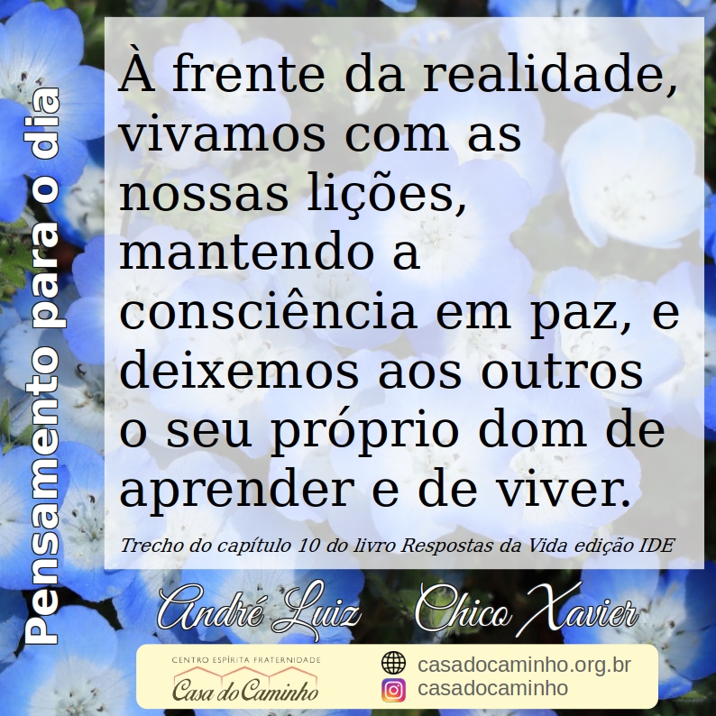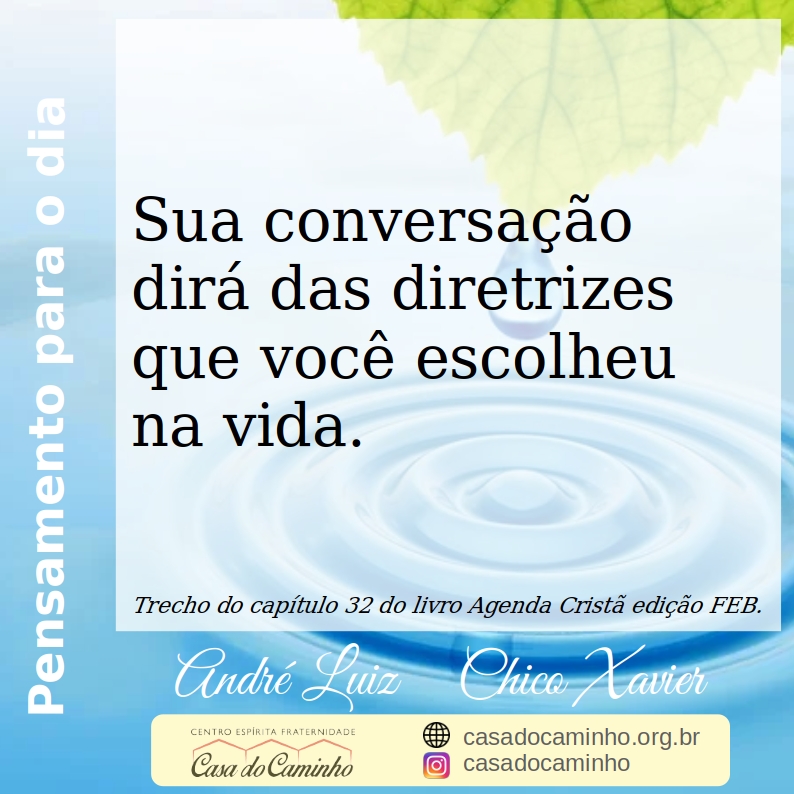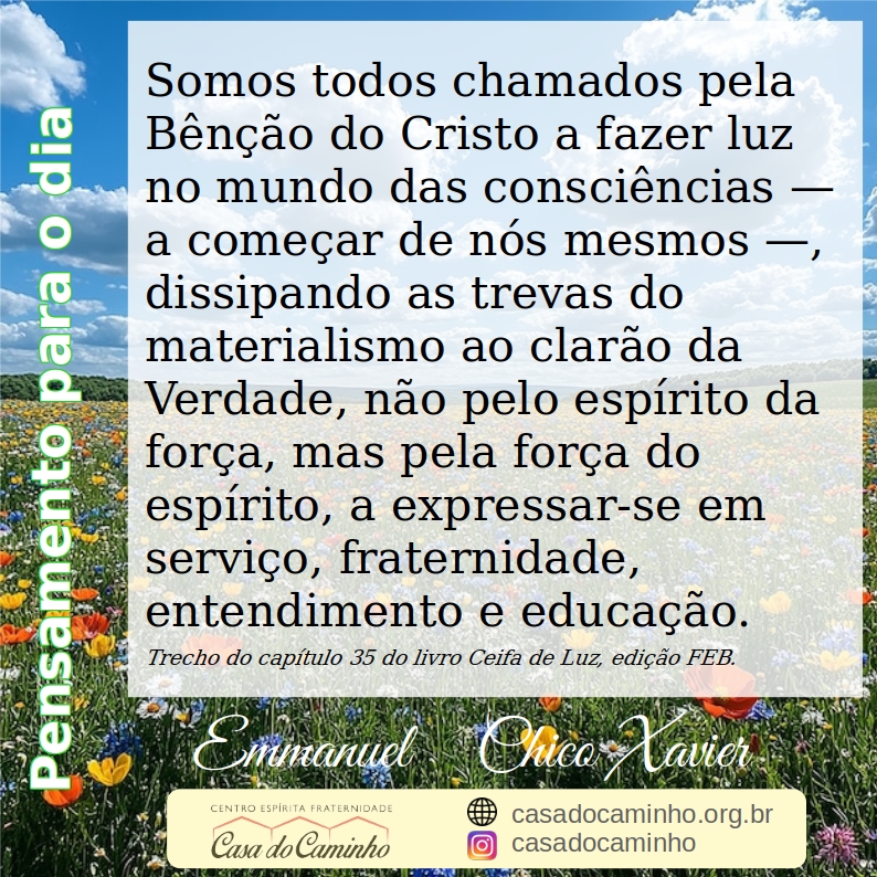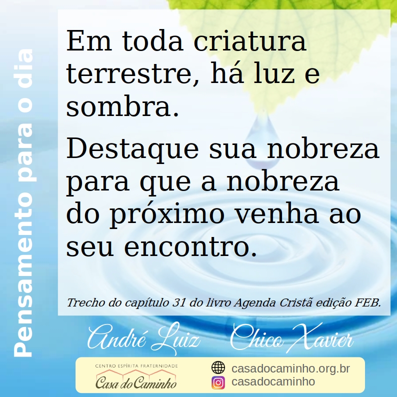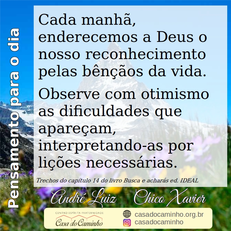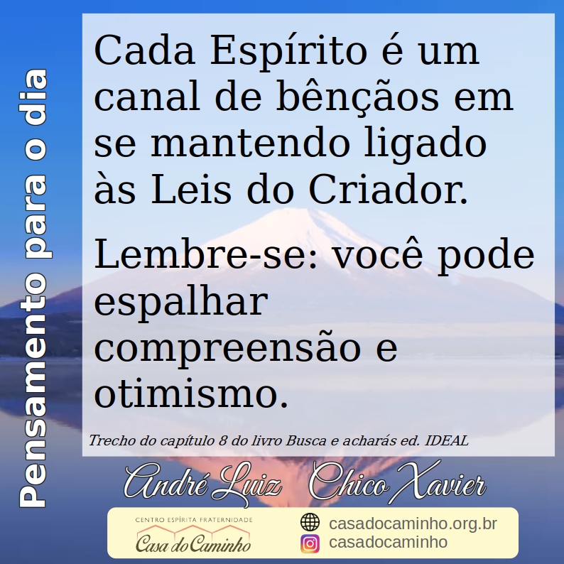 De segunda a sexta-feira, no período da manhã, enviamos uma mensagem espírita contendo um pequeno texto para reflexão e prece ao começar o dia.