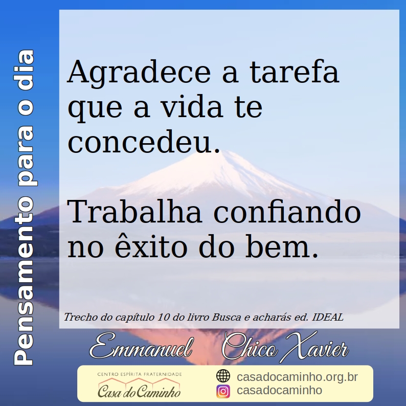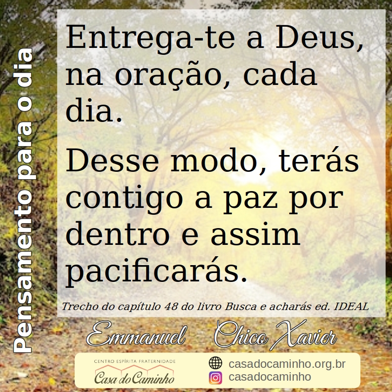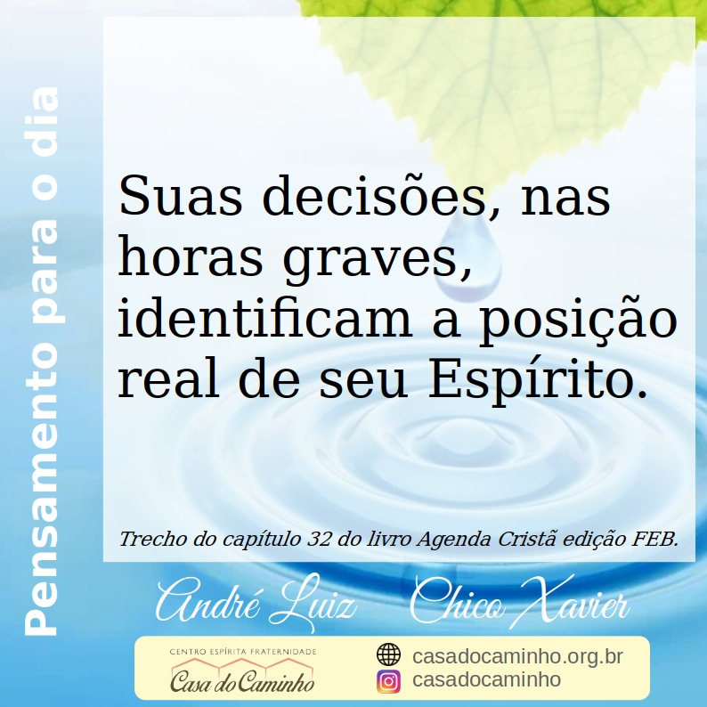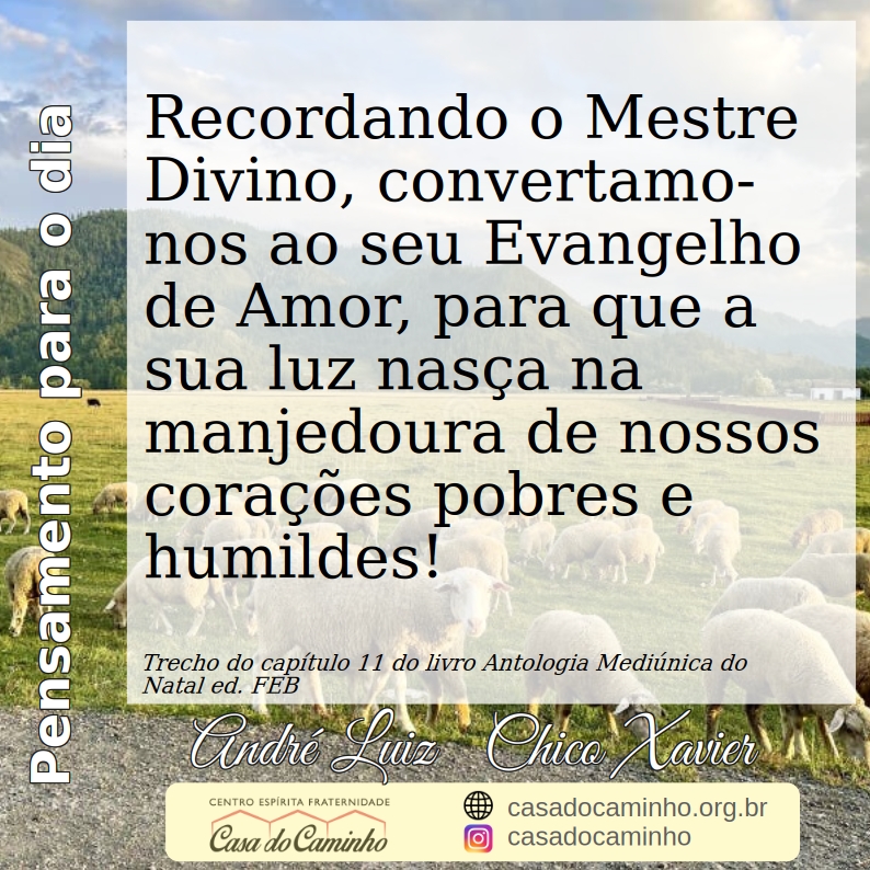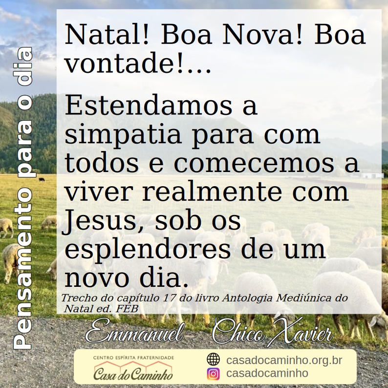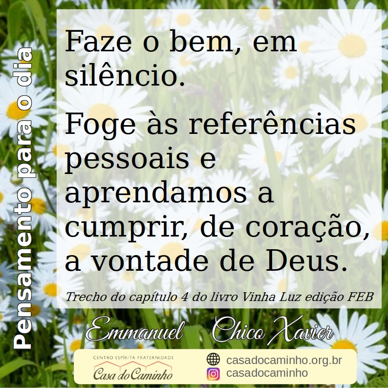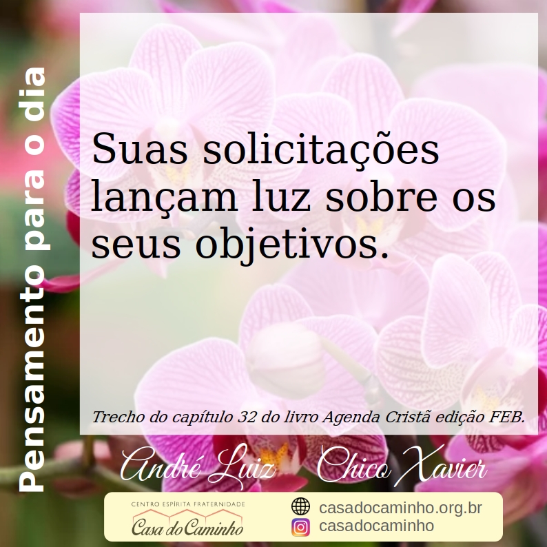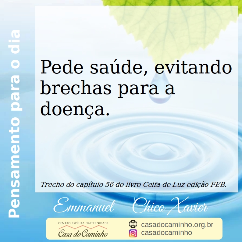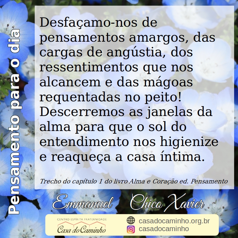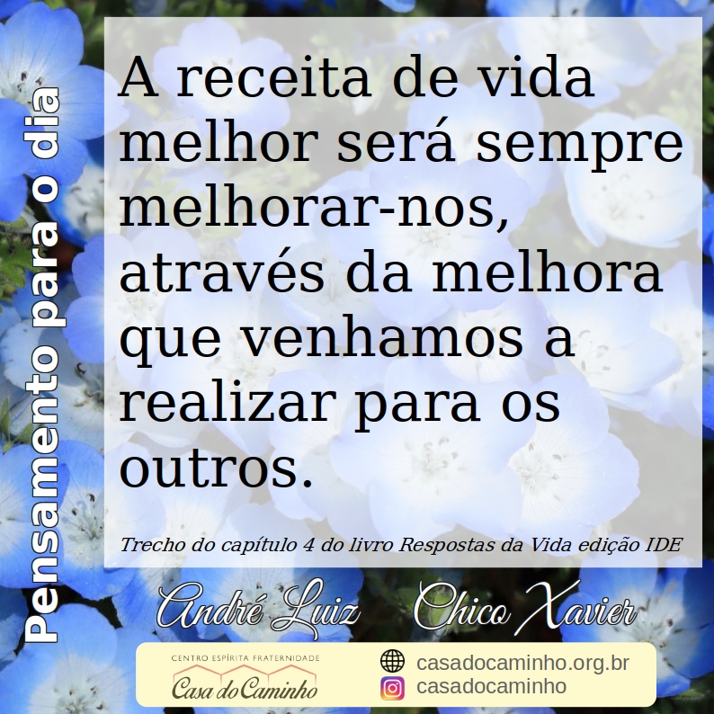 De segunda a sexta-feira, no período da manhã, enviamos uma mensagem espírita contendo um pequeno texto para reflexão e prece ao começar o dia.