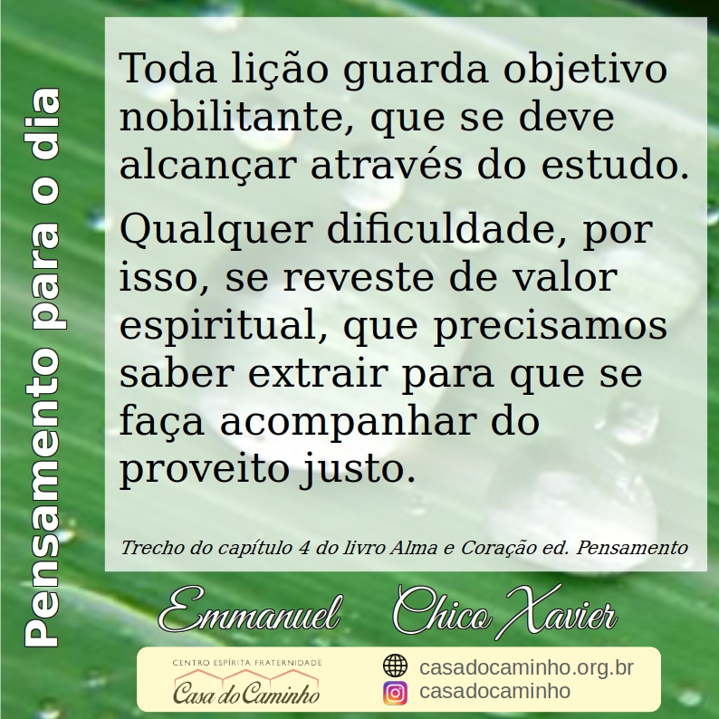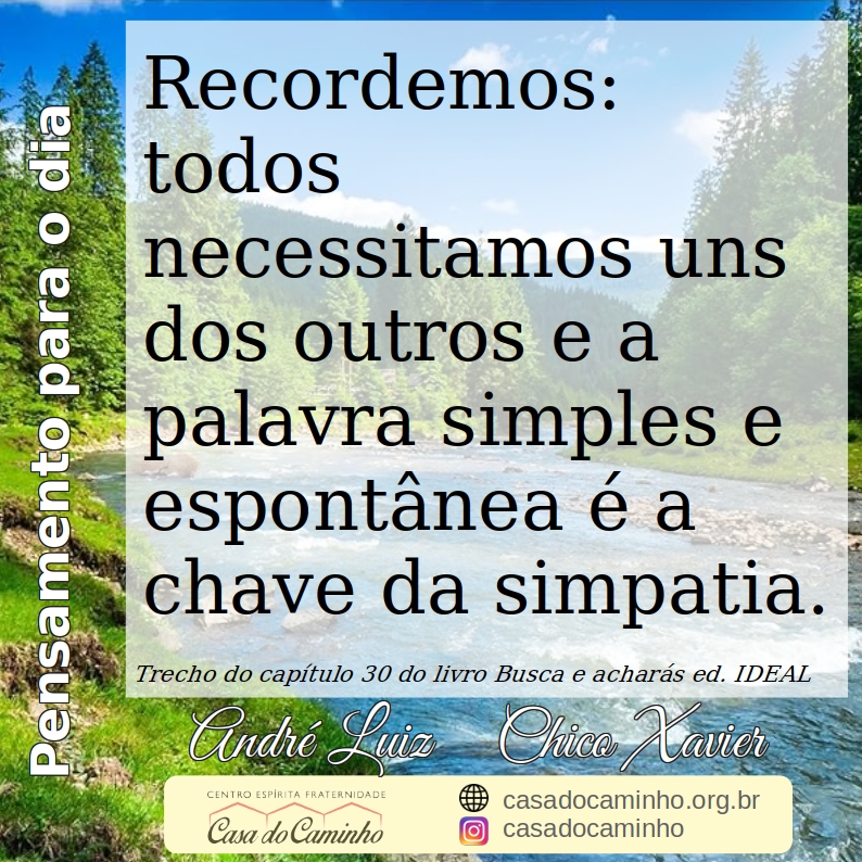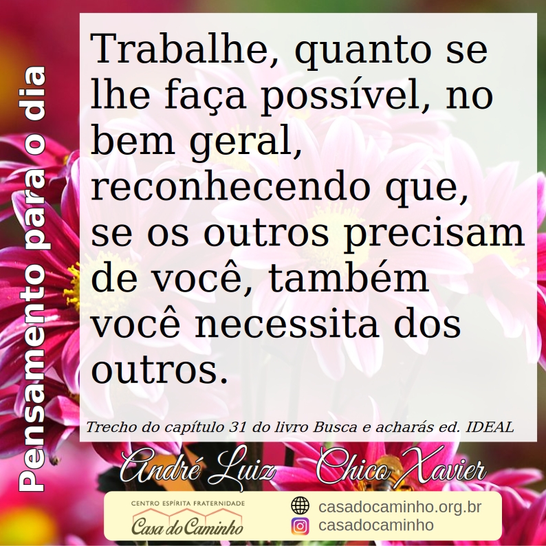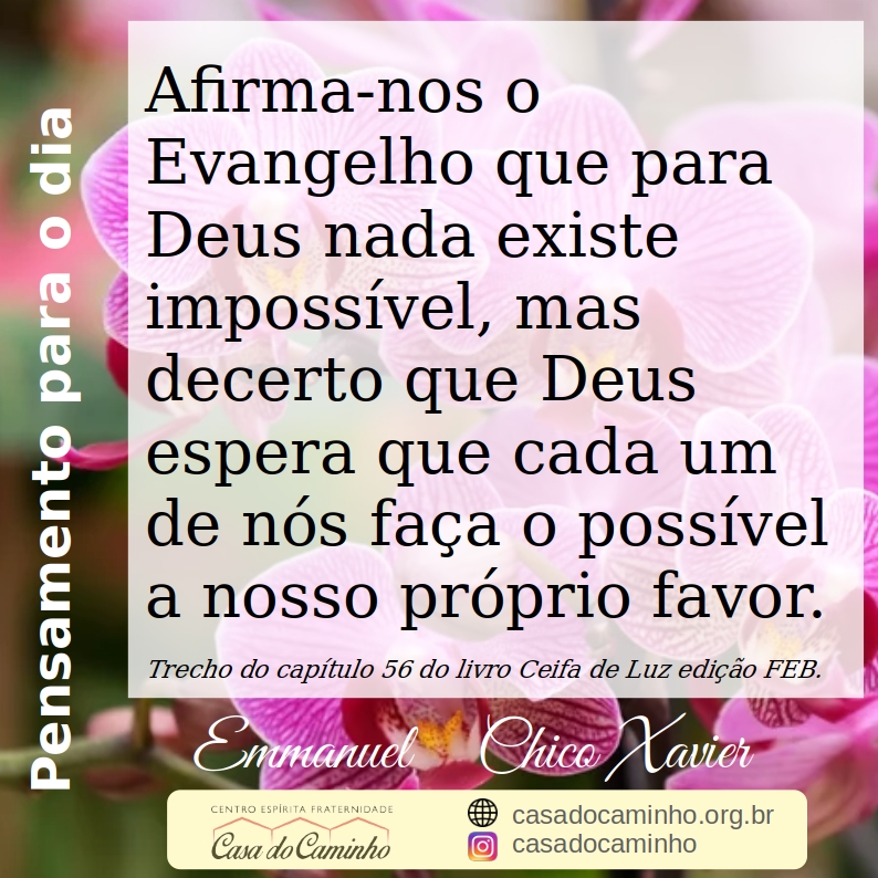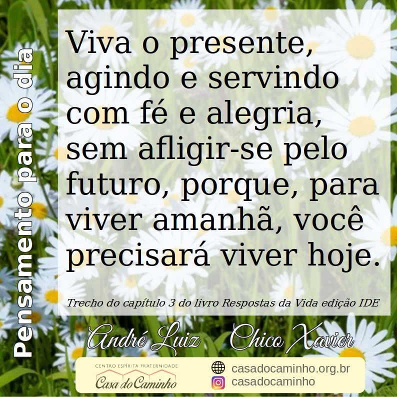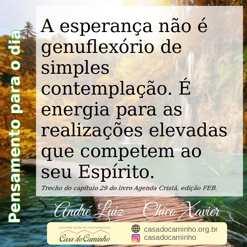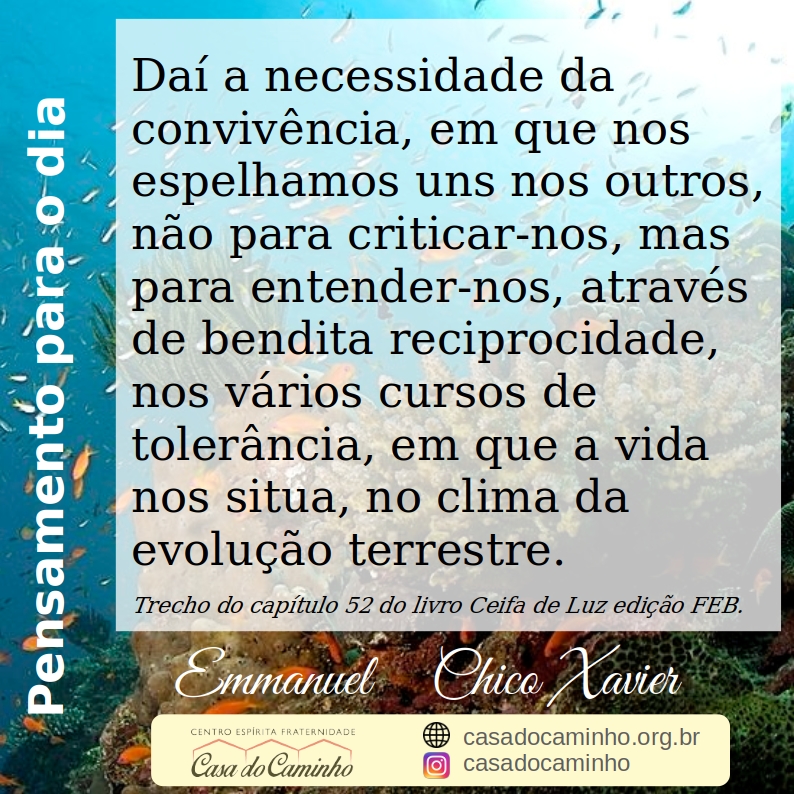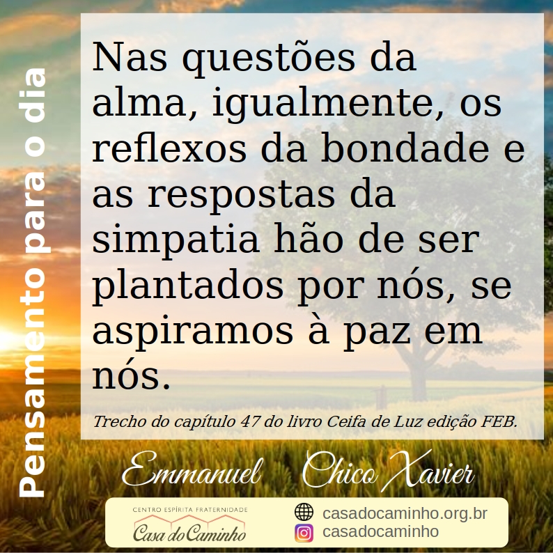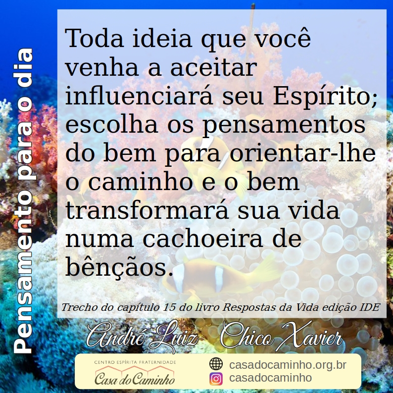 De segunda a sexta-feira, no período da manhã, enviamos uma mensagem espírita contendo um pequeno texto para reflexão e prece ao começar o dia.