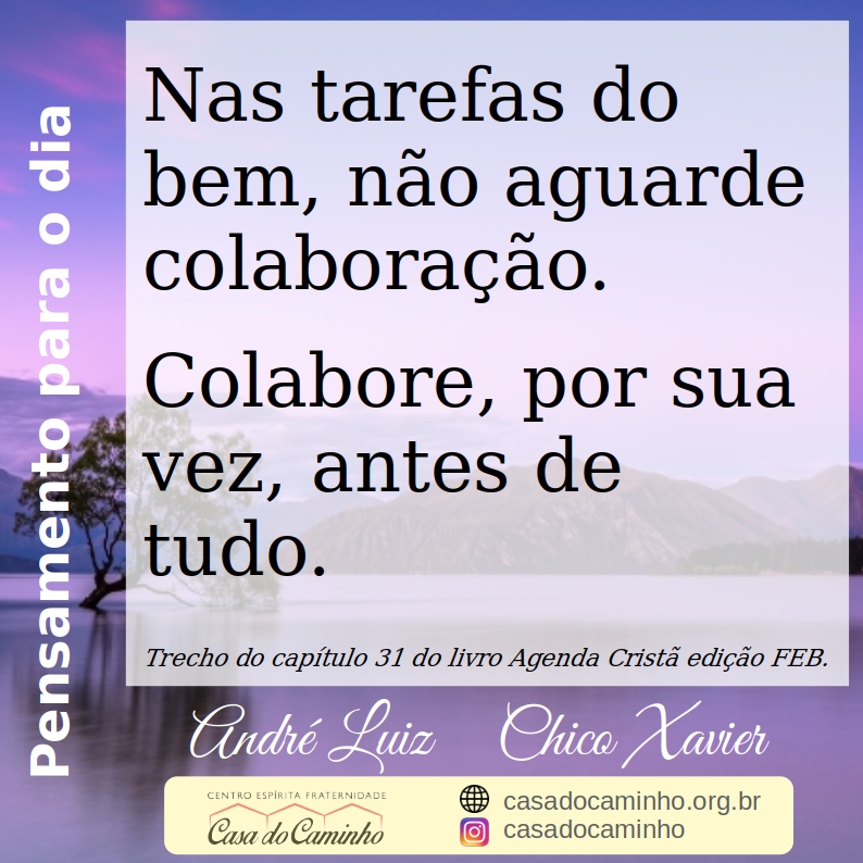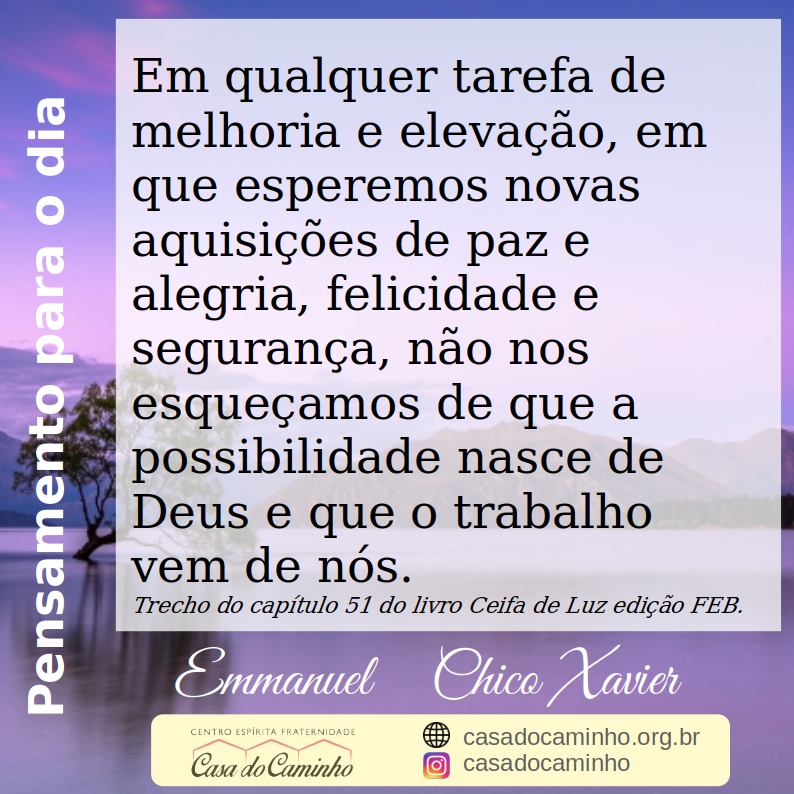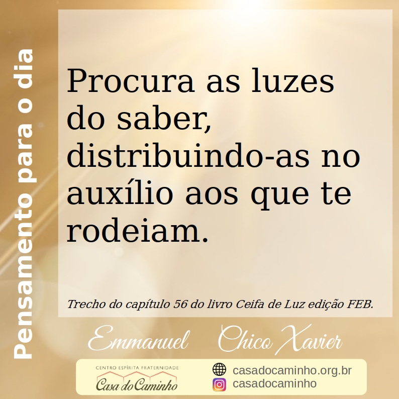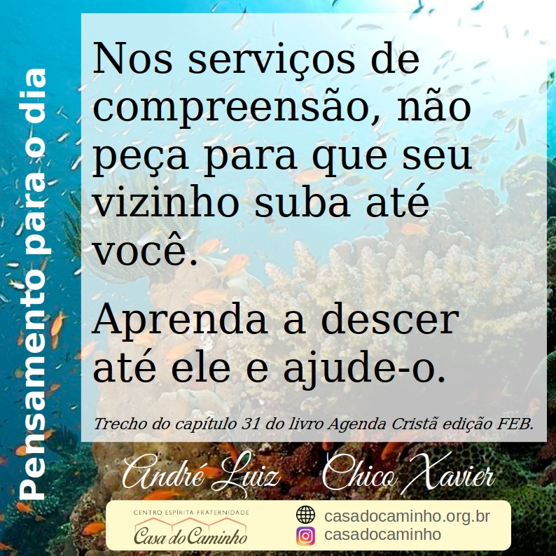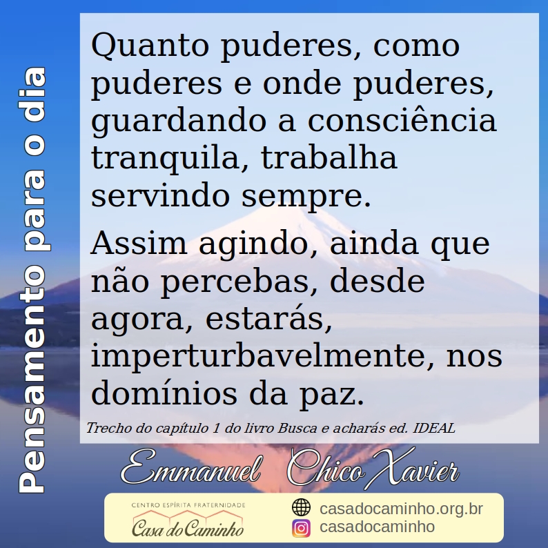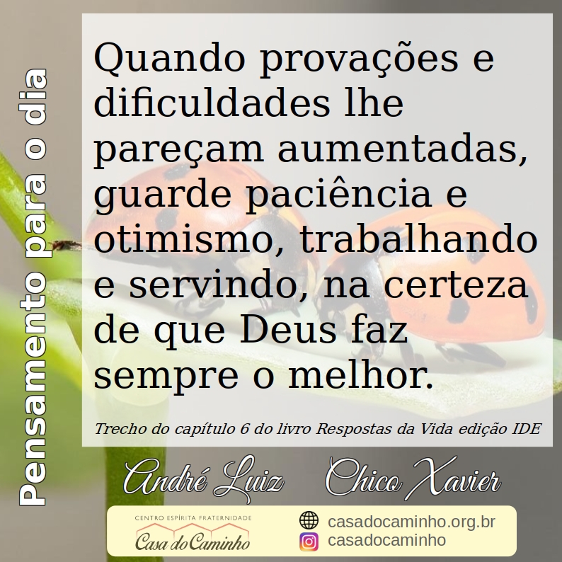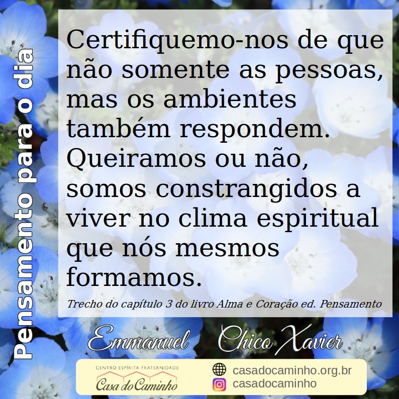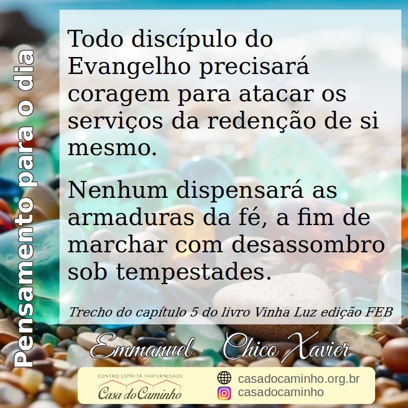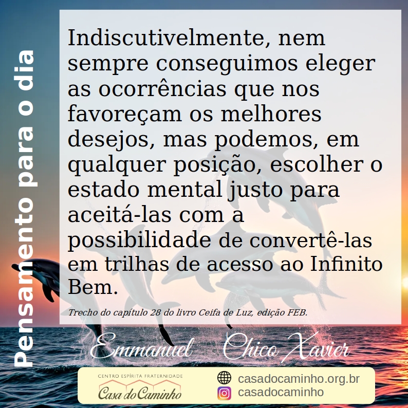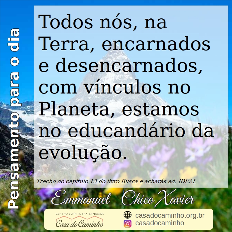 De segunda a sexta-feira, no período da manhã, enviamos uma mensagem espírita contendo um pequeno texto para reflexão e prece ao começar o dia.