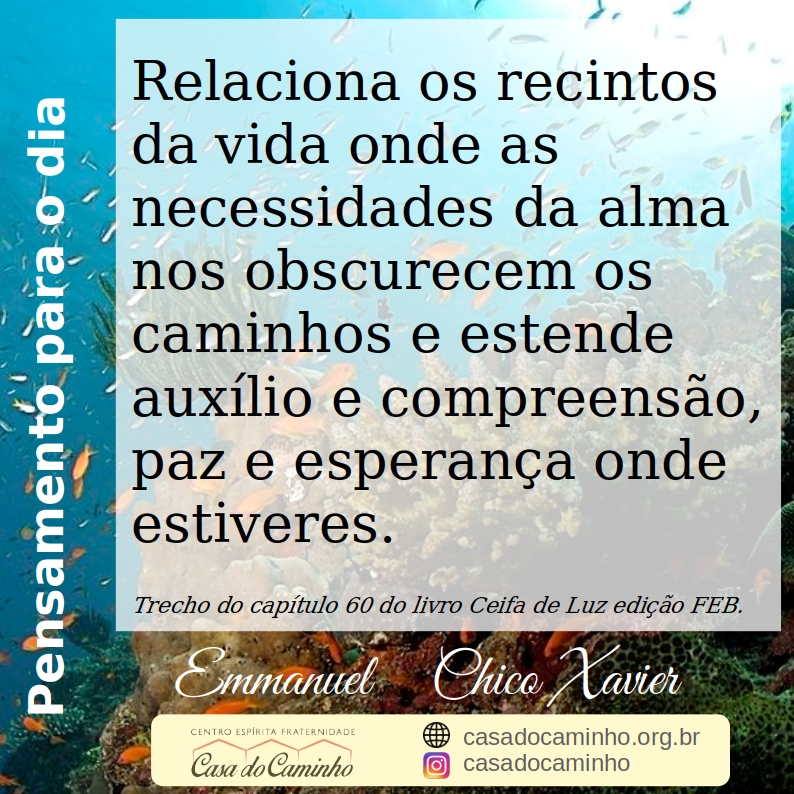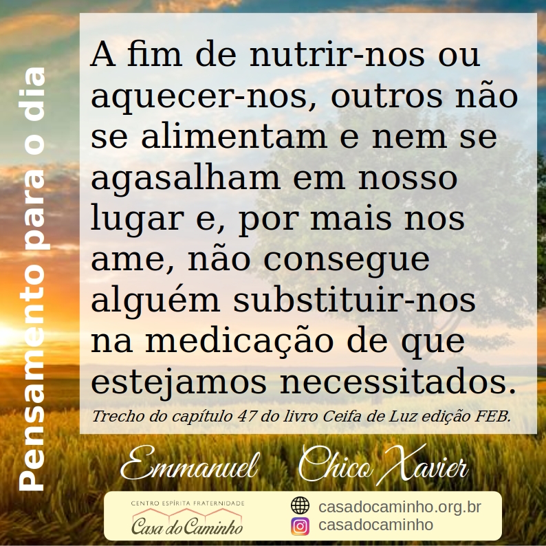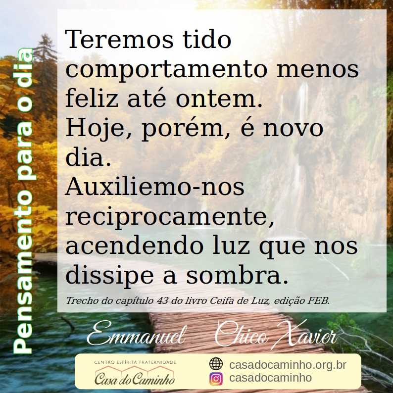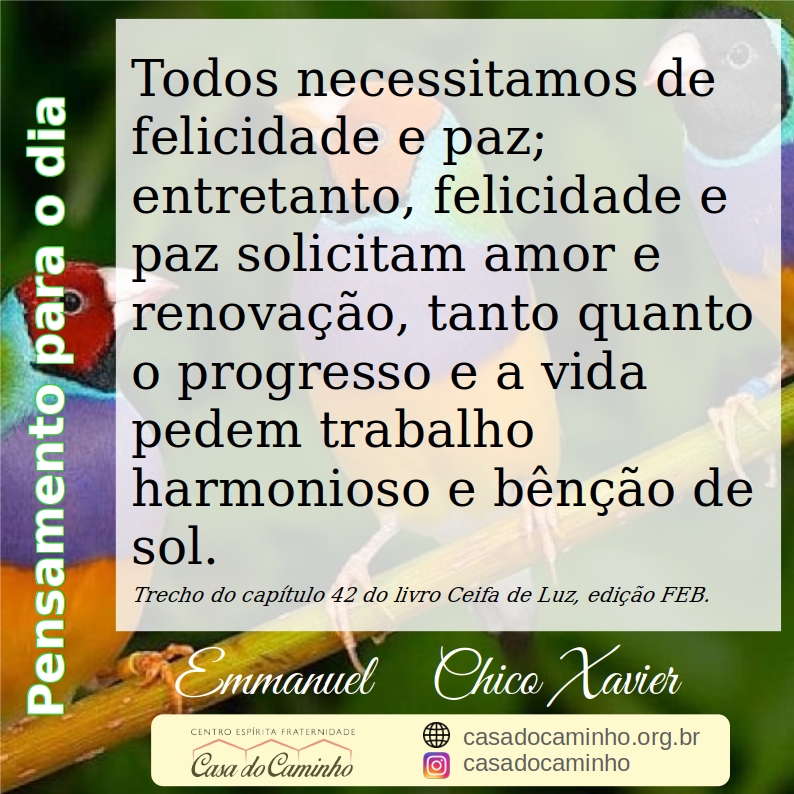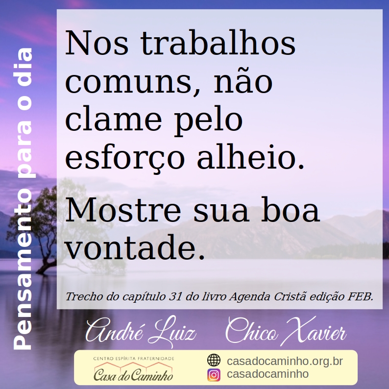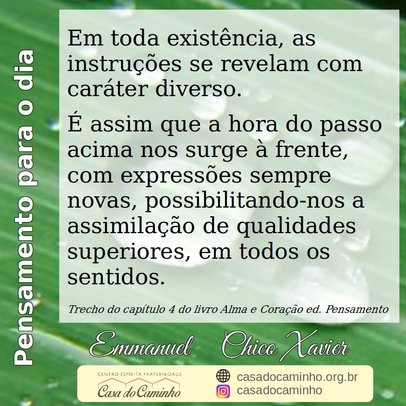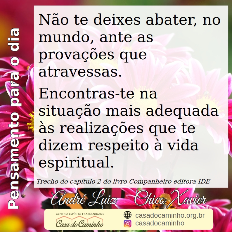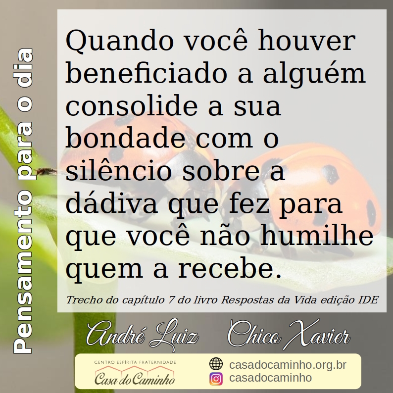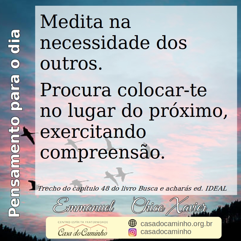De segunda a sexta-feira, no período da manhã, enviamos uma mensagem espírita contendo um pequeno texto para reflexão e prece ao começar o dia.