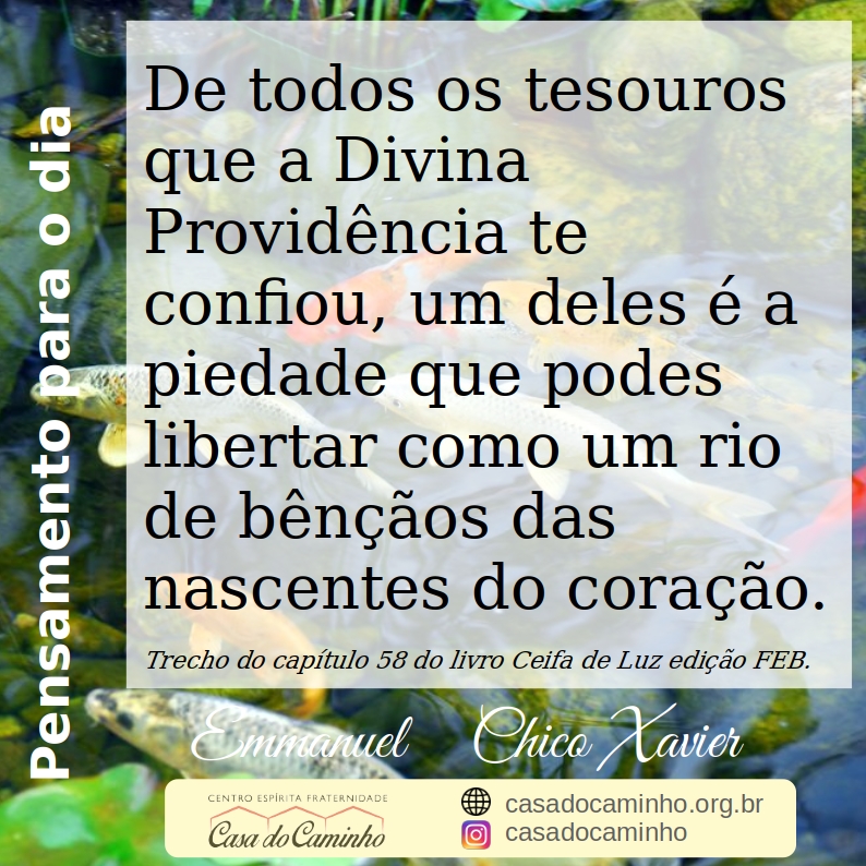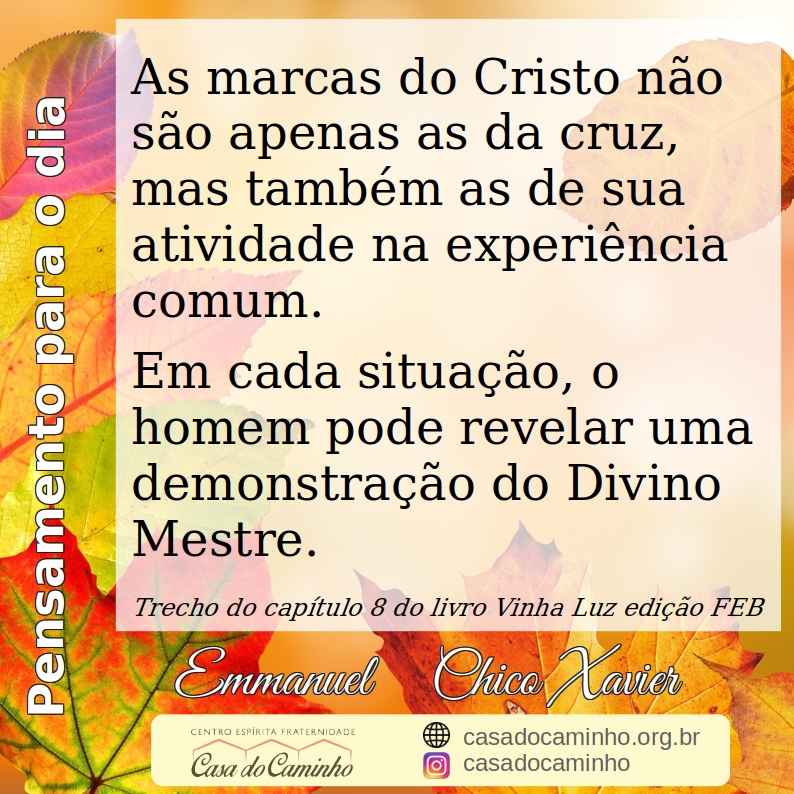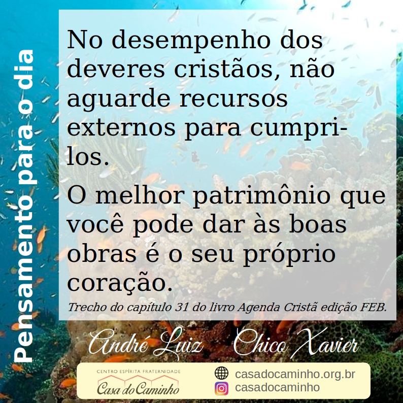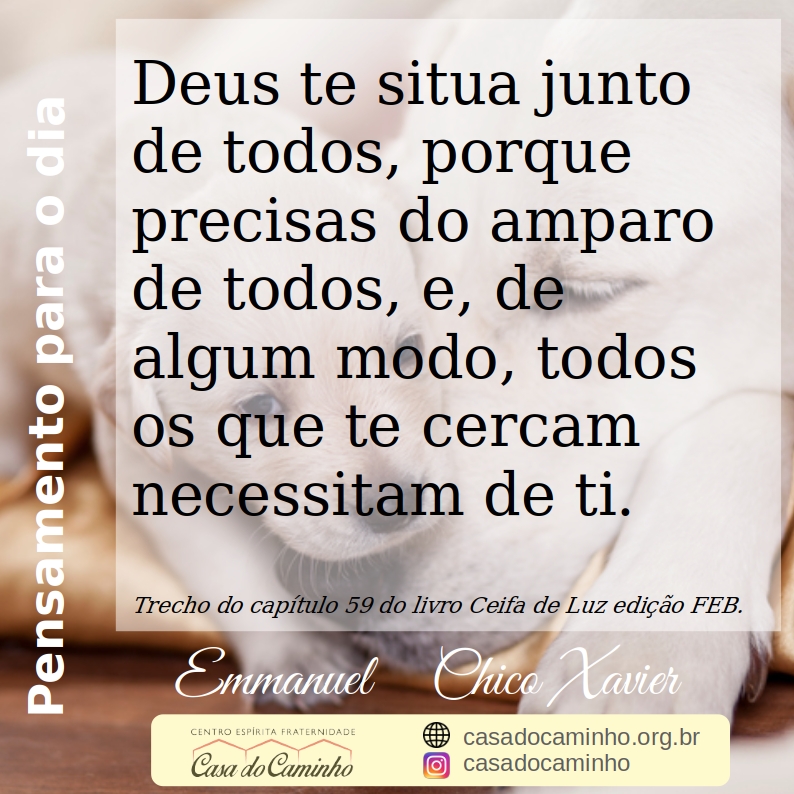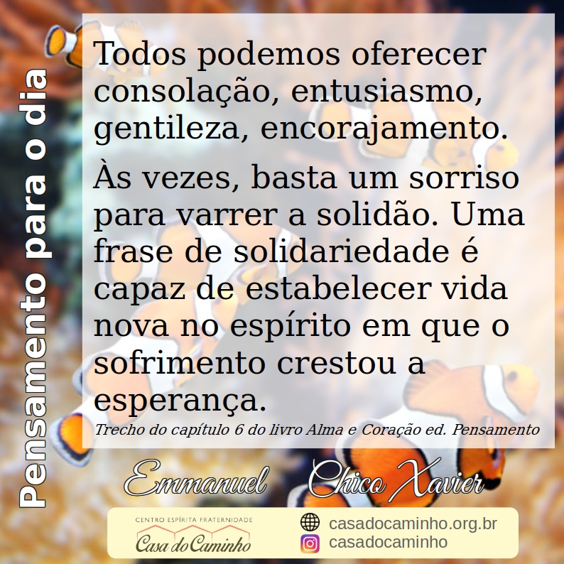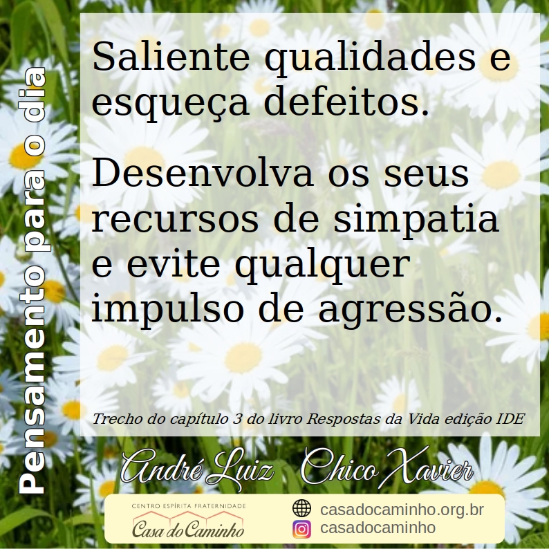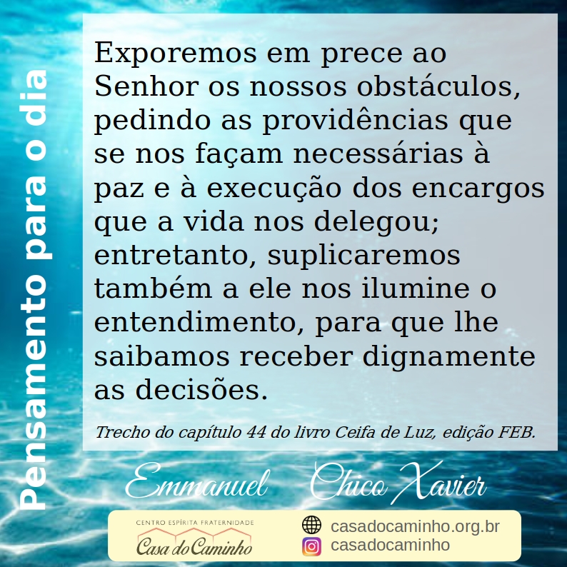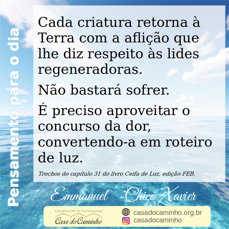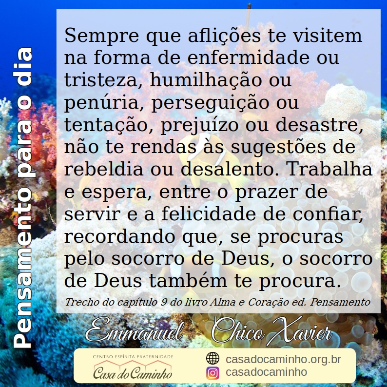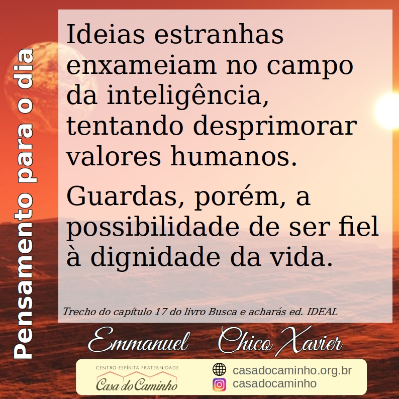 De segunda a sexta-feira, no período da manhã, enviamos uma mensagem espírita contendo um pequeno texto para reflexão e prece ao começar o dia.