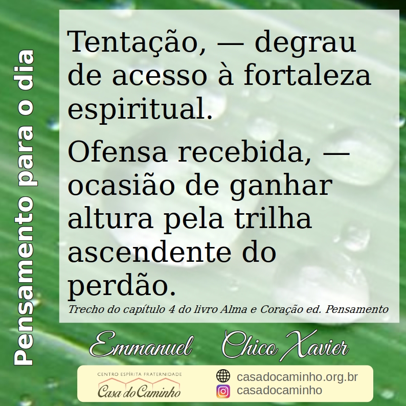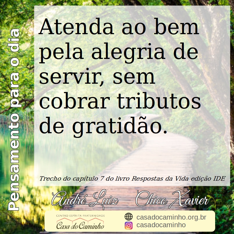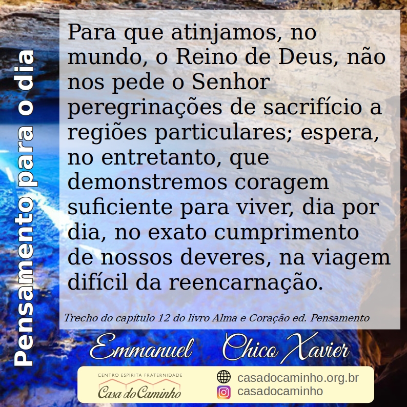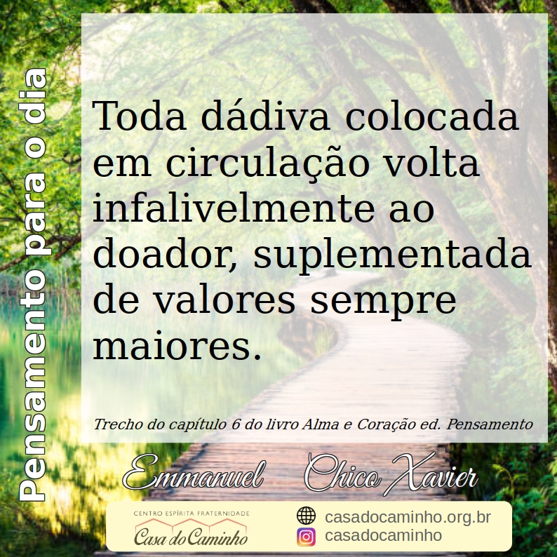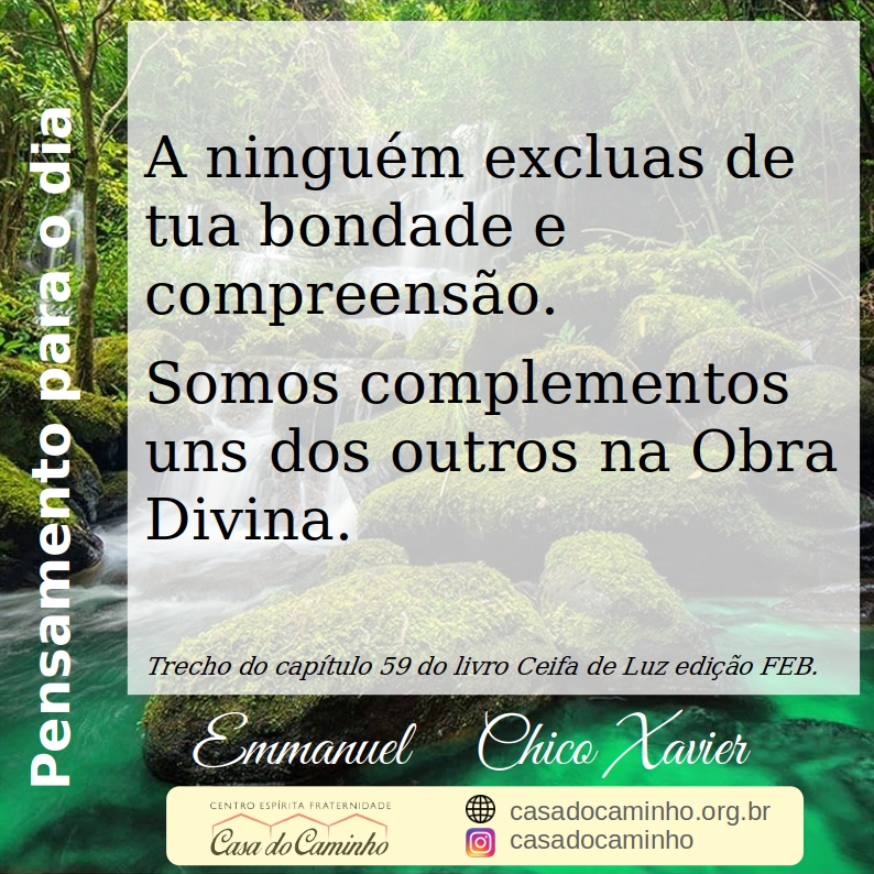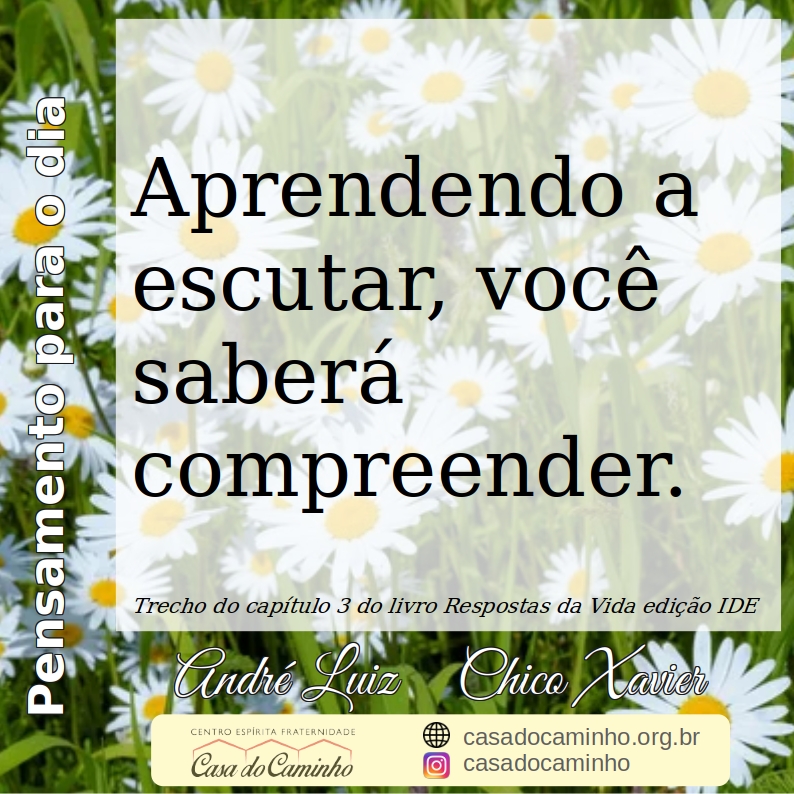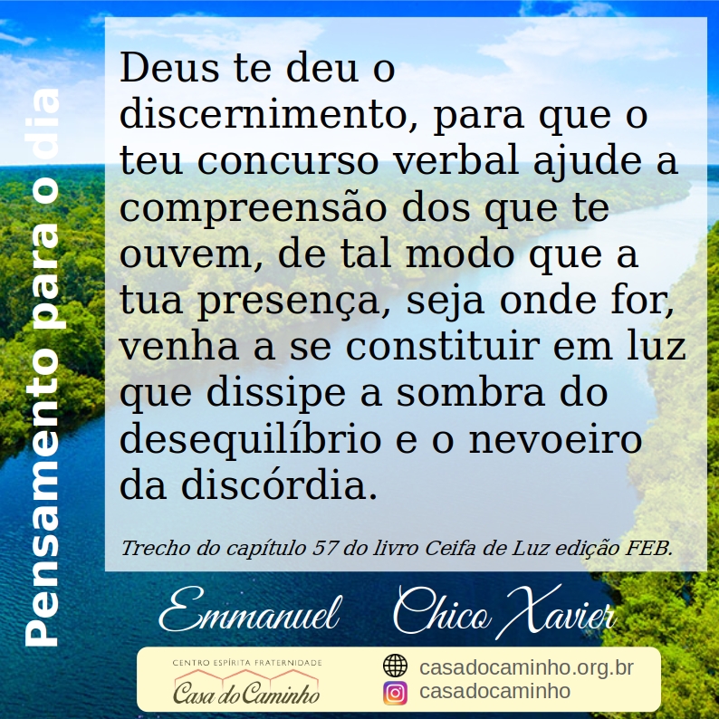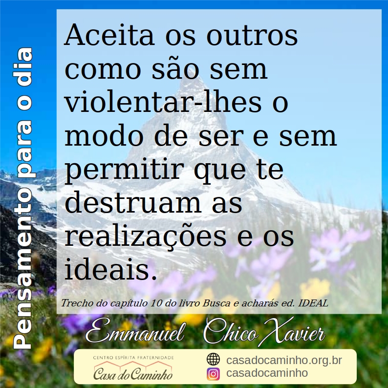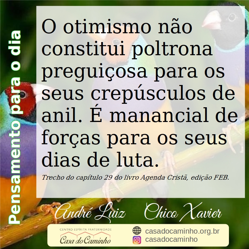 De segunda a sexta-feira, no período da manhã, enviamos uma mensagem espírita contendo um pequeno texto para reflexão e prece ao começar o dia.