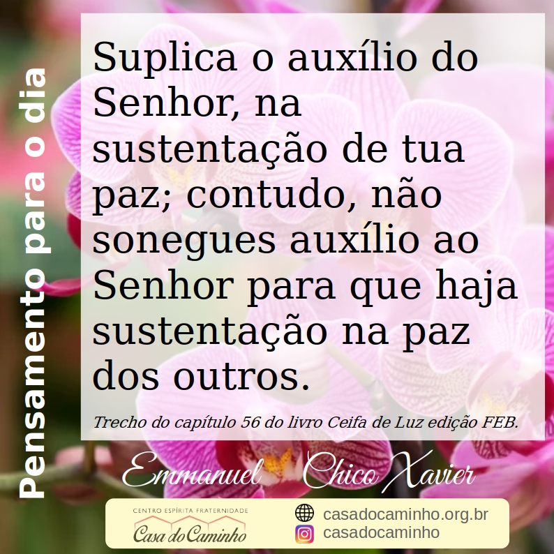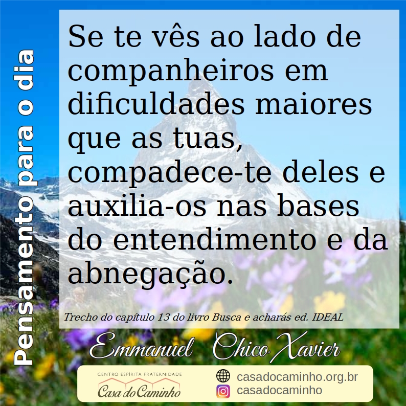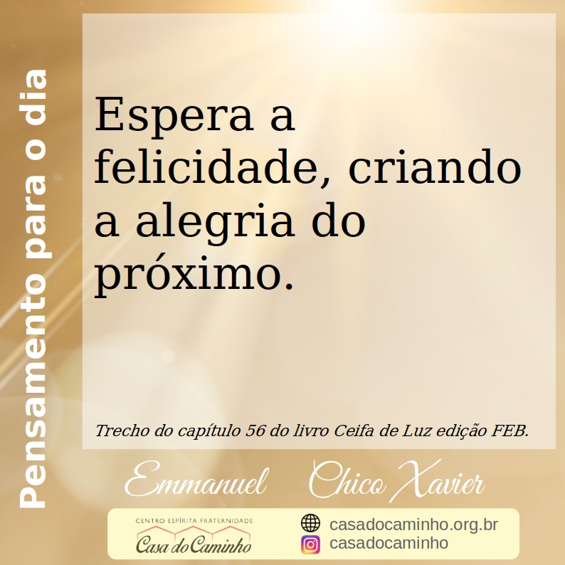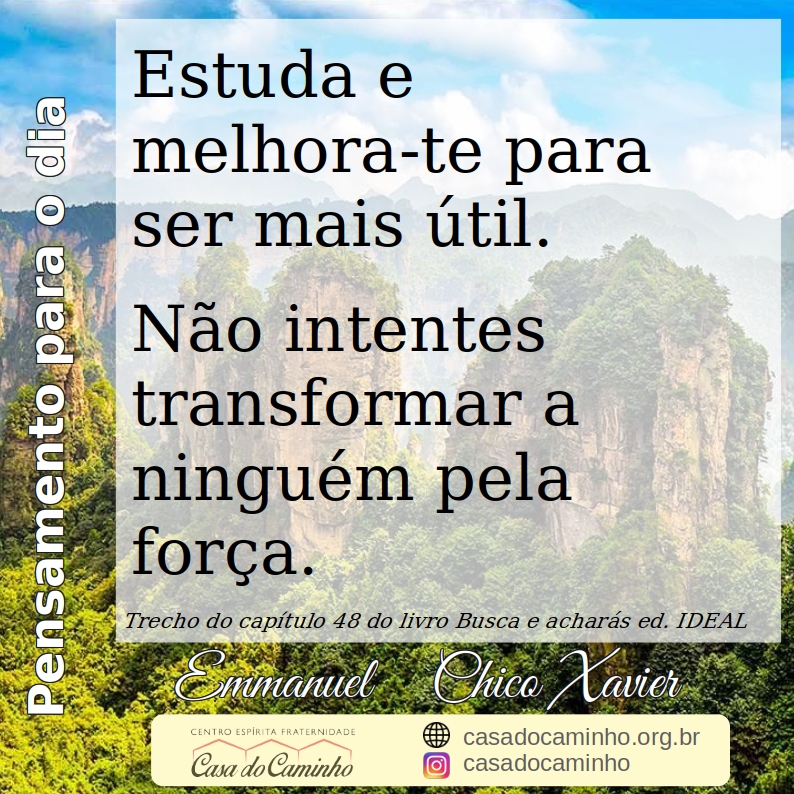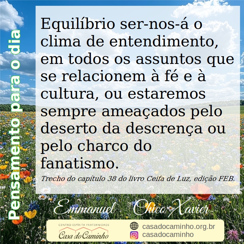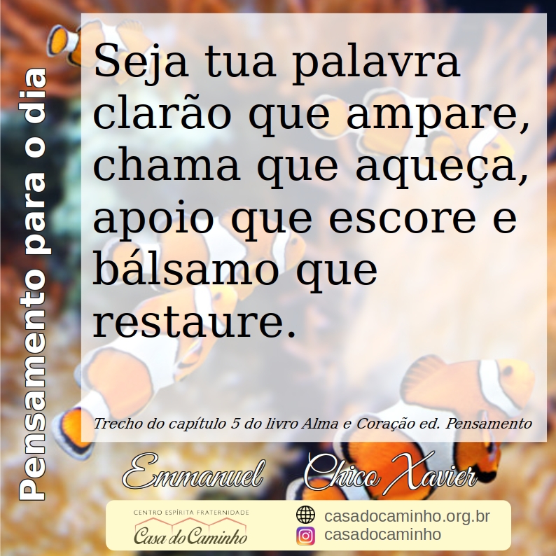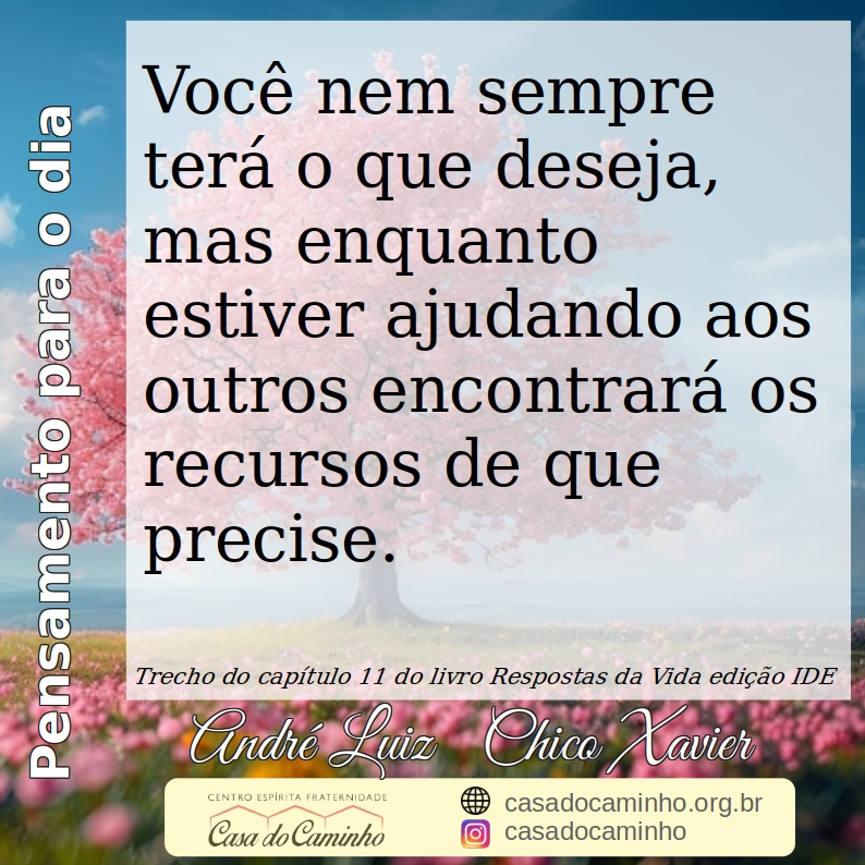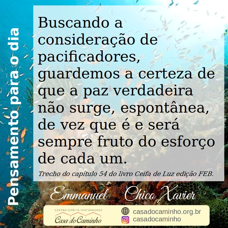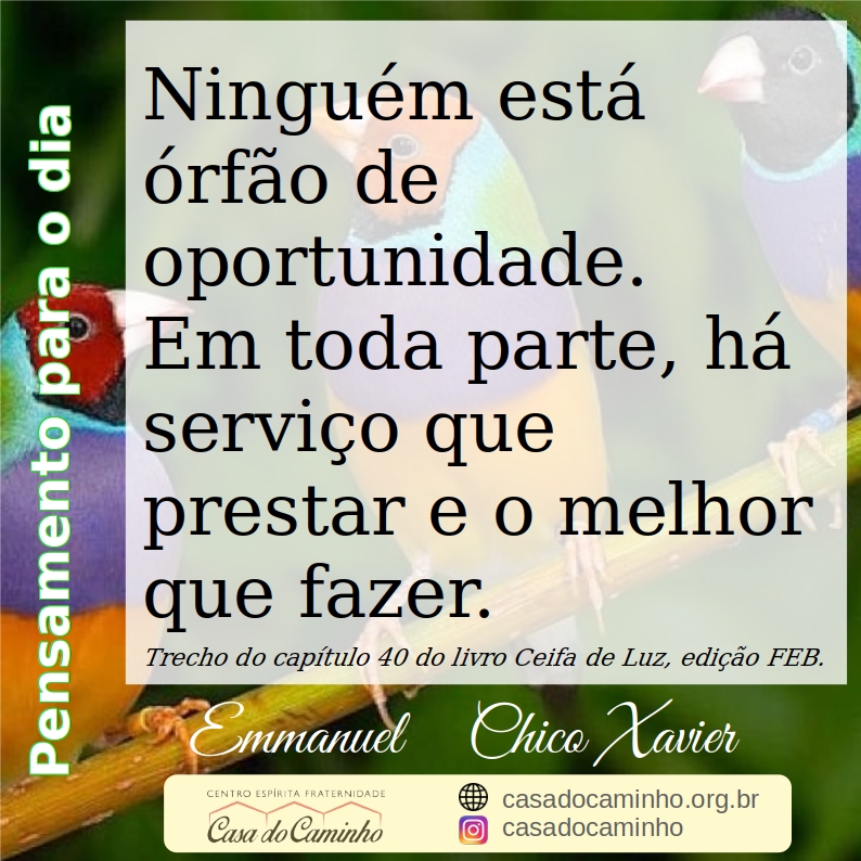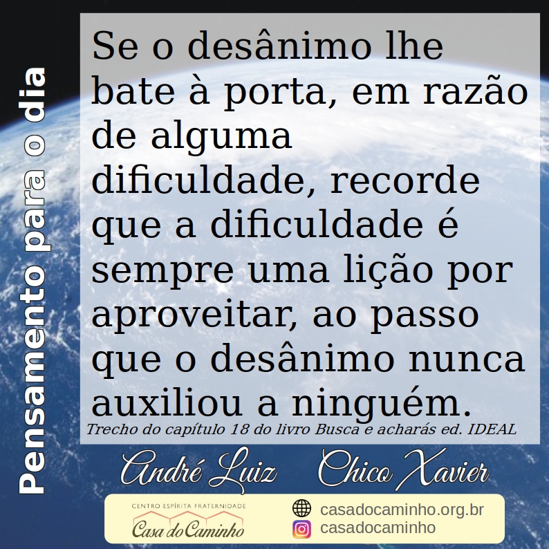 De segunda a sexta-feira, no período da manhã, enviamos uma mensagem espírita contendo um pequeno texto para reflexão e prece ao começar o dia.