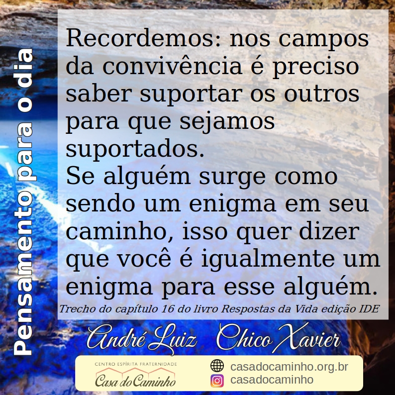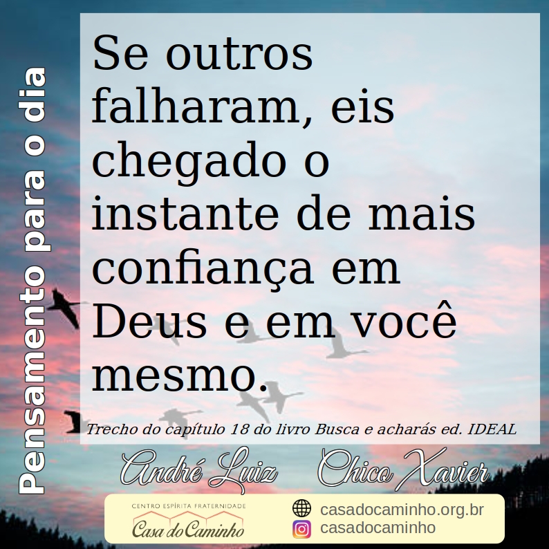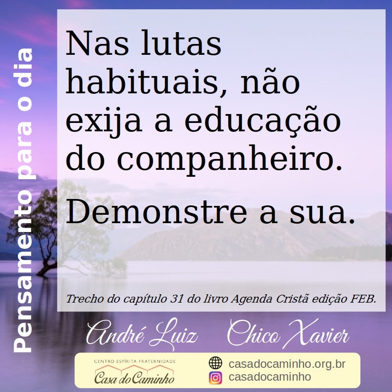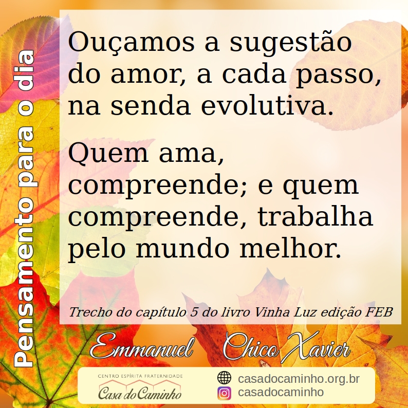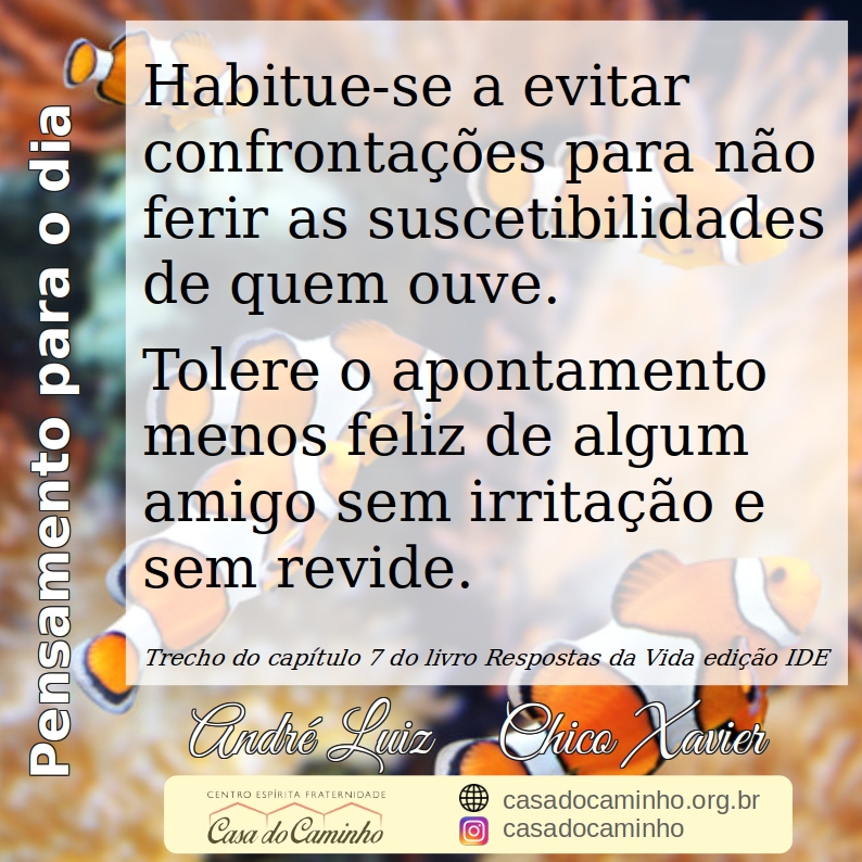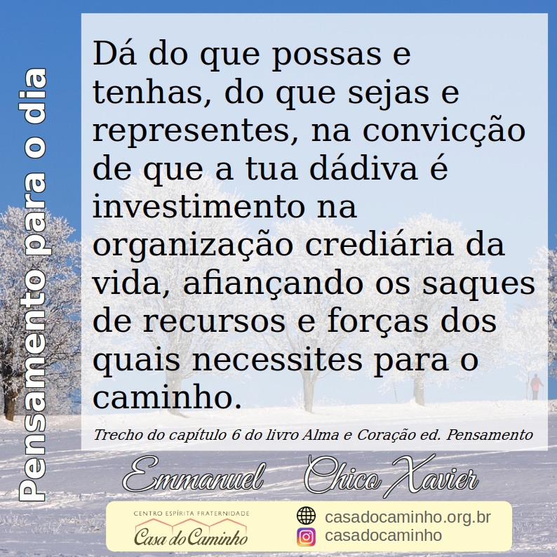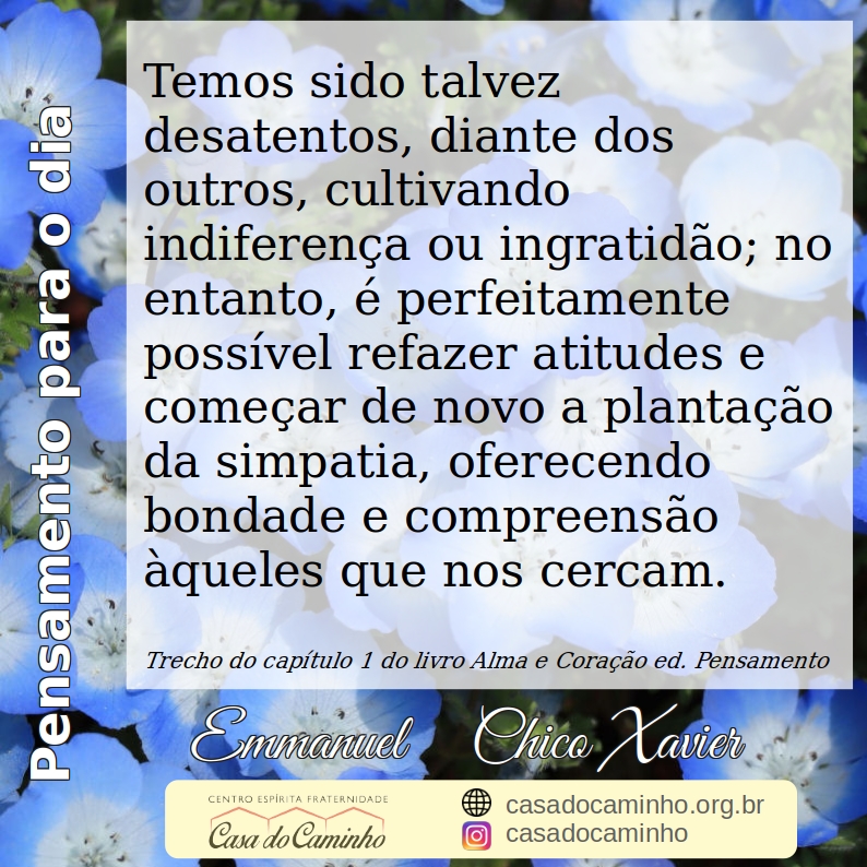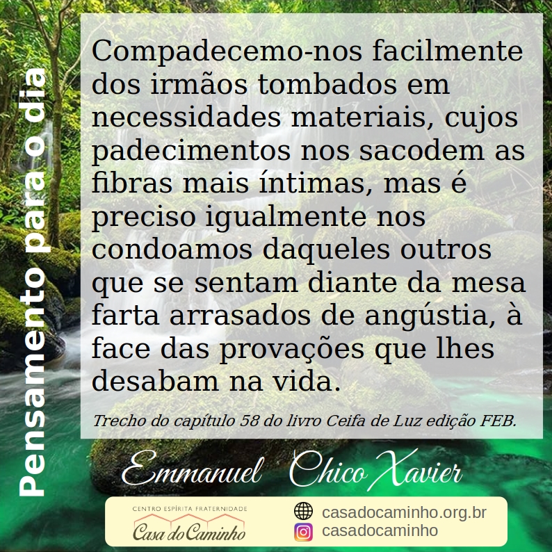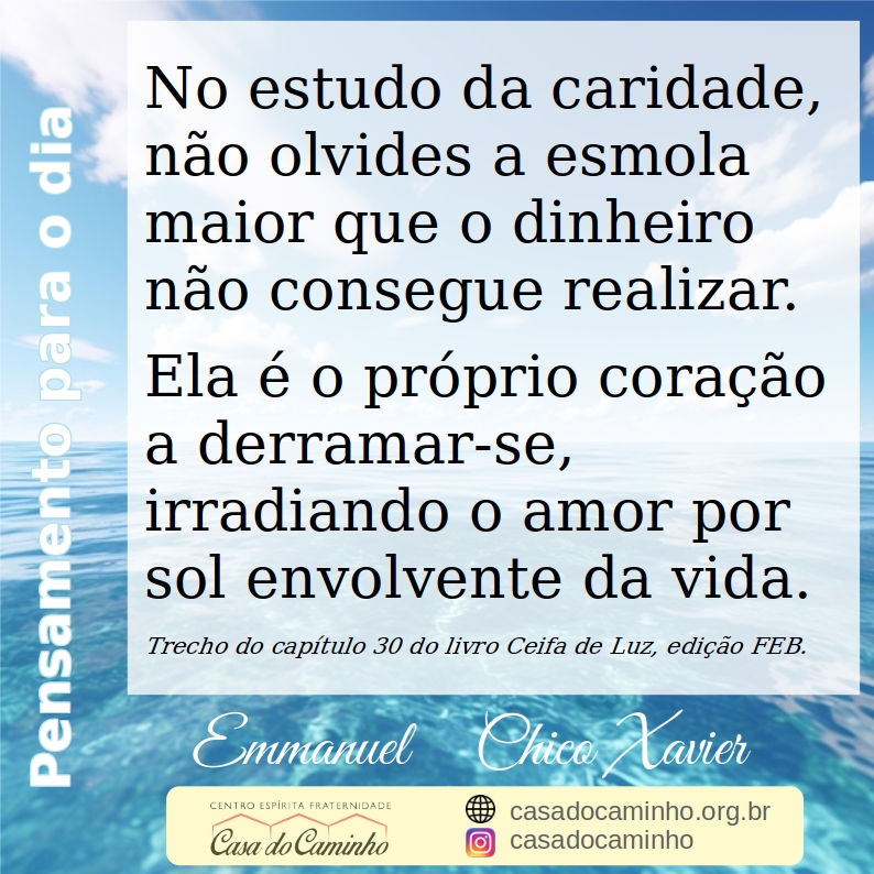 De segunda a sexta-feira, no período da manhã, enviamos uma mensagem espírita contendo um pequeno texto para reflexão e prece ao começar o dia.