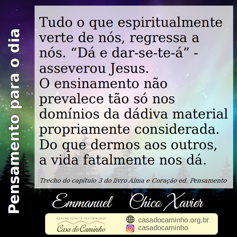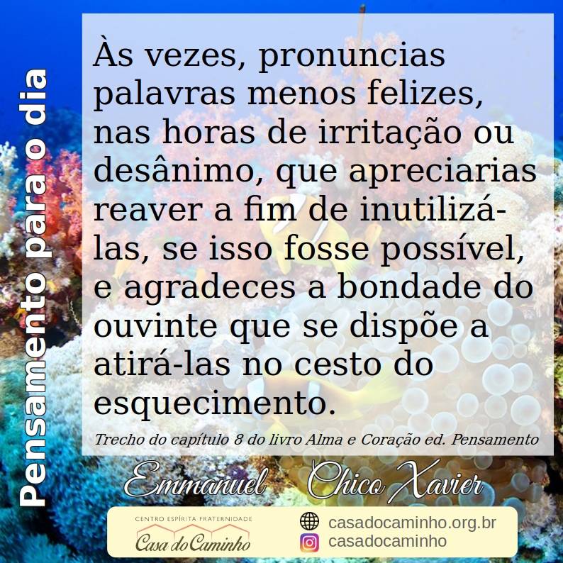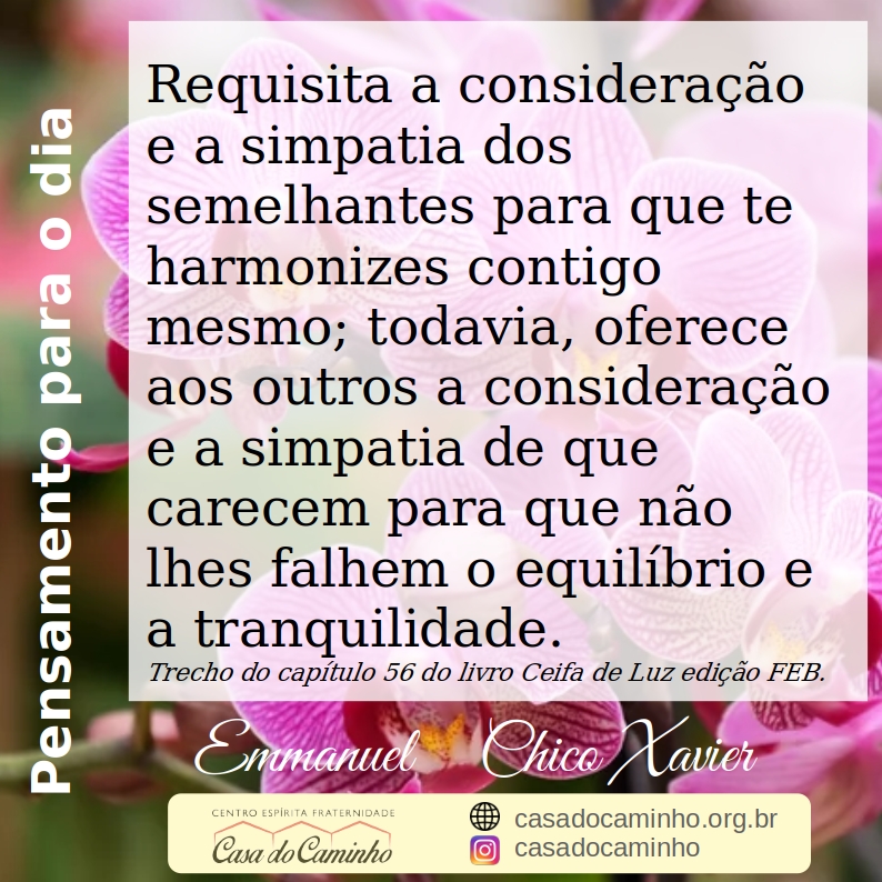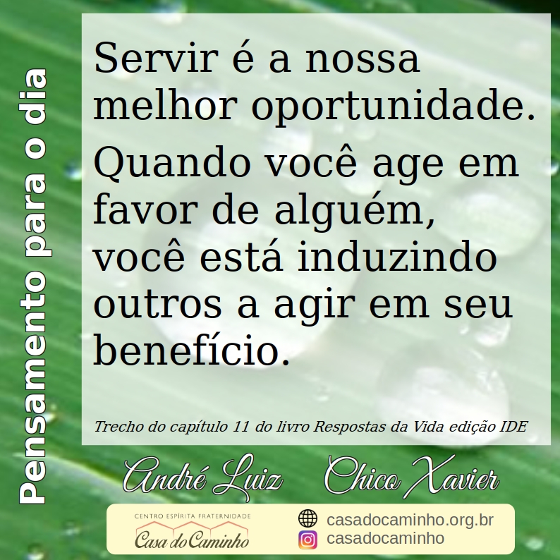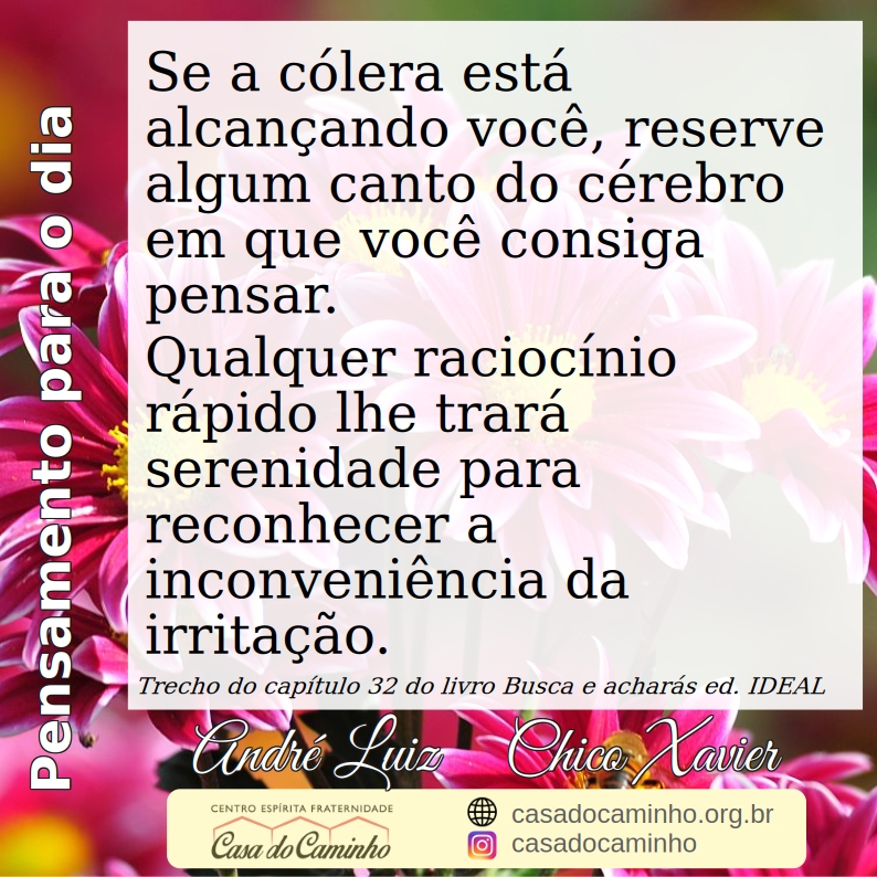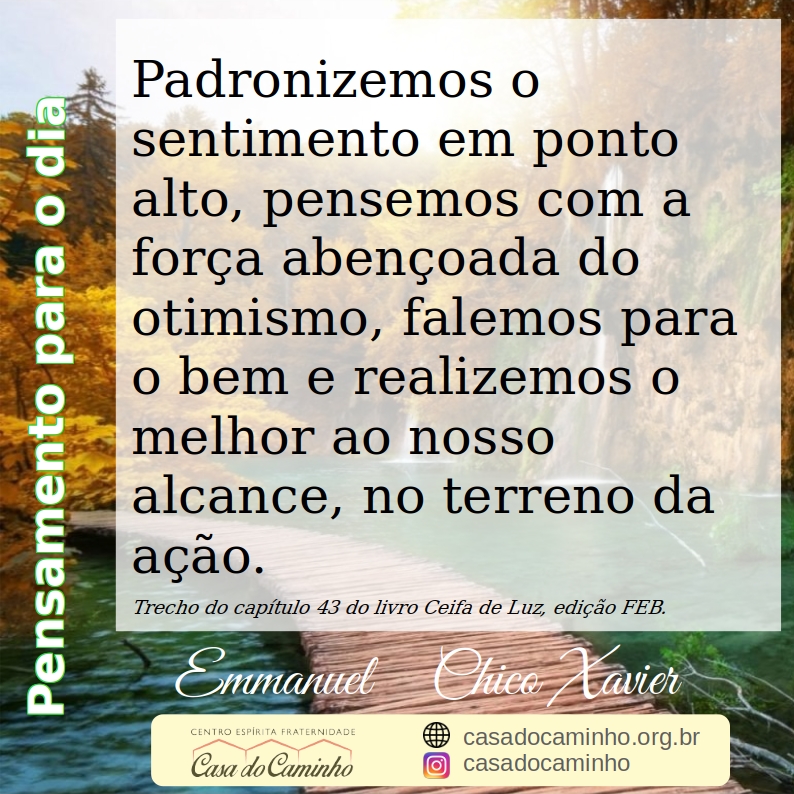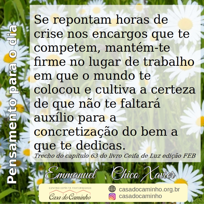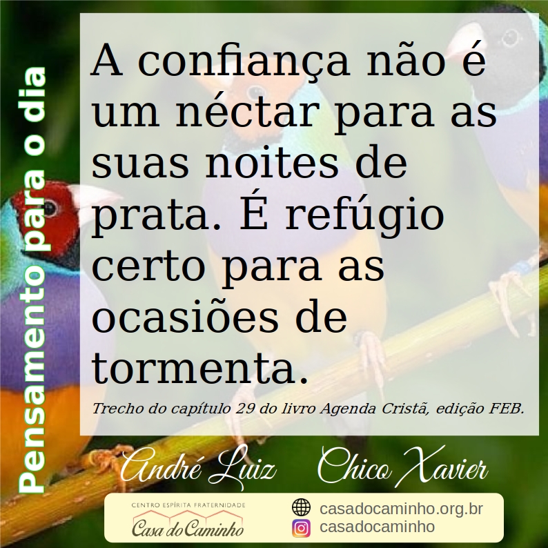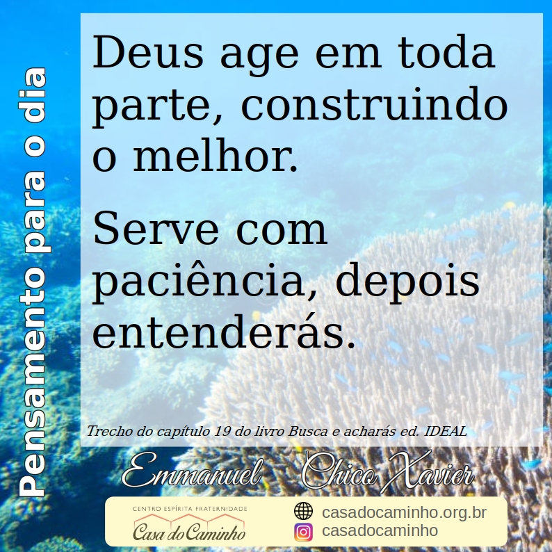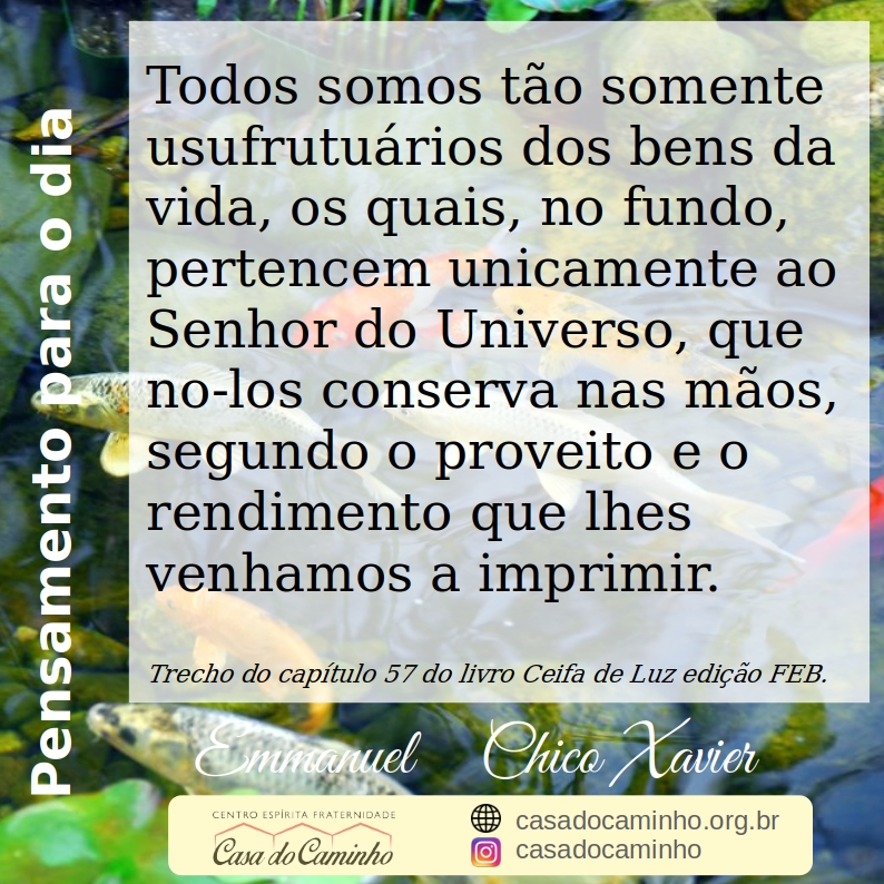 De segunda a sexta-feira, no período da manhã, enviamos uma mensagem espírita contendo um pequeno texto para reflexão e prece ao começar o dia.