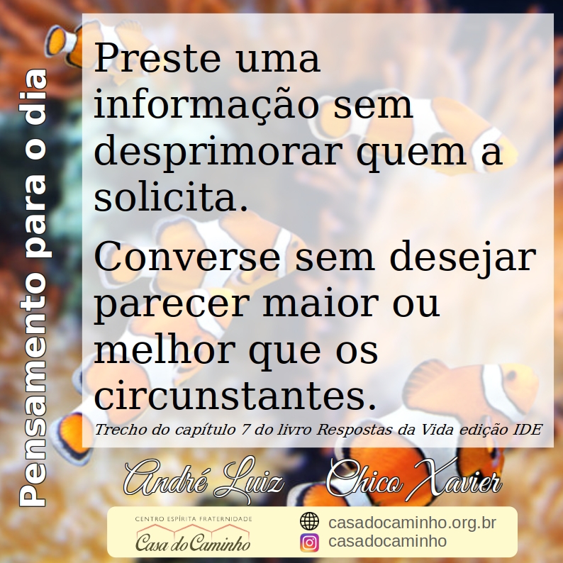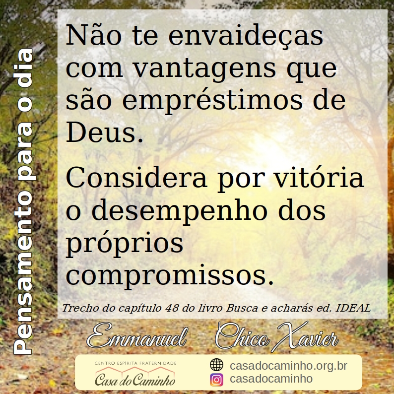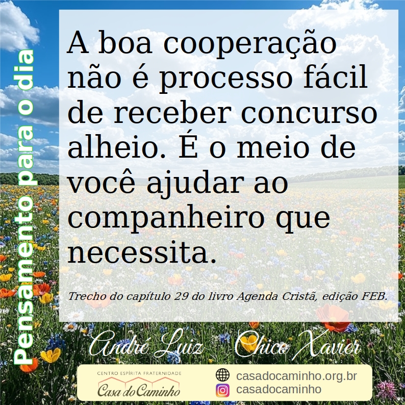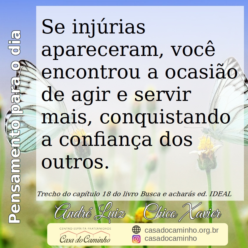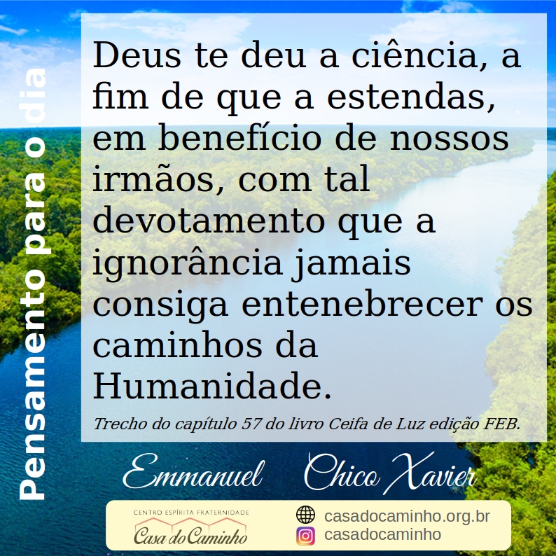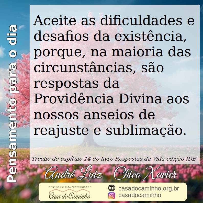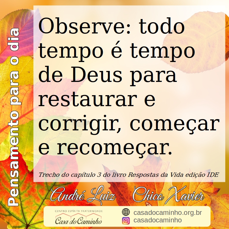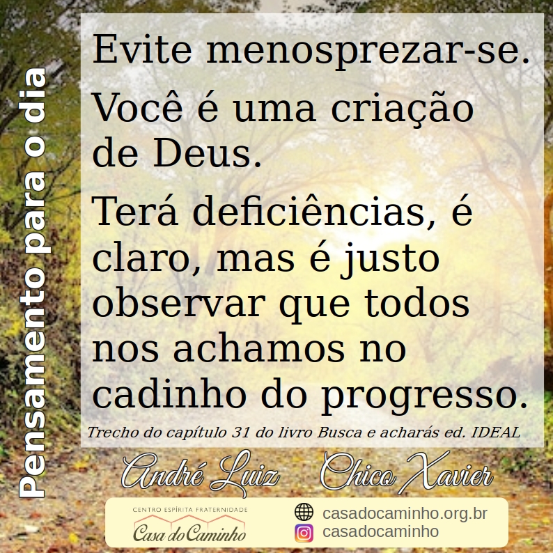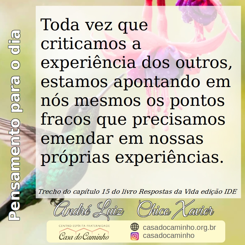 De segunda a sexta-feira, no período da manhã, enviamos uma mensagem espírita contendo um pequeno texto para reflexão e prece ao começar o dia.