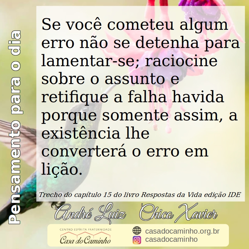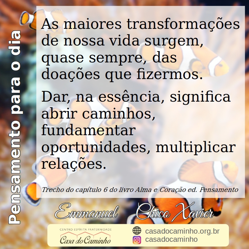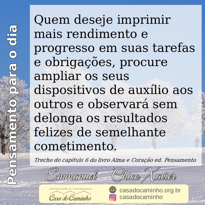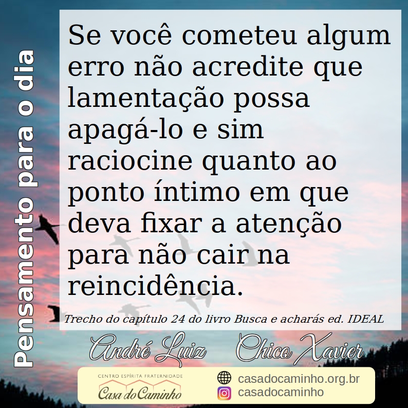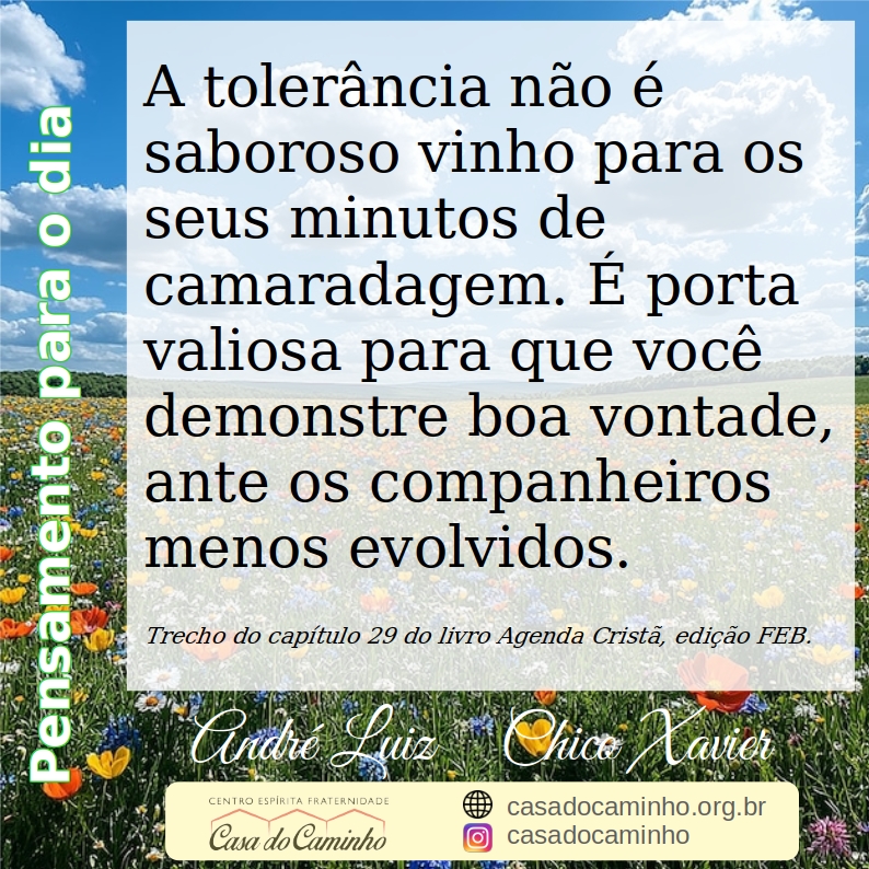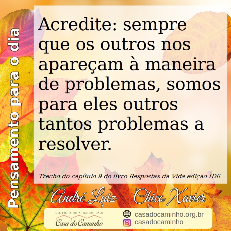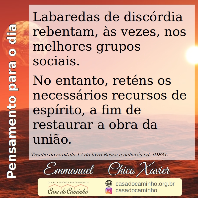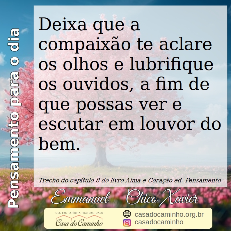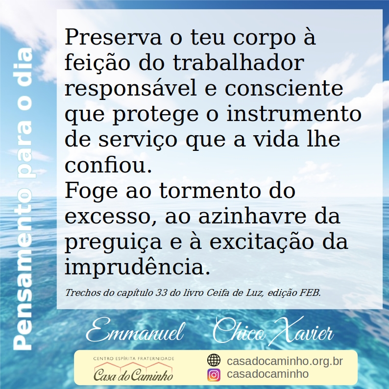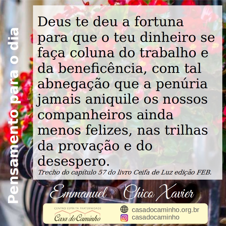 De segunda a sexta-feira, no período da manhã, enviamos uma mensagem espírita contendo um pequeno texto para reflexão e prece ao começar o dia.