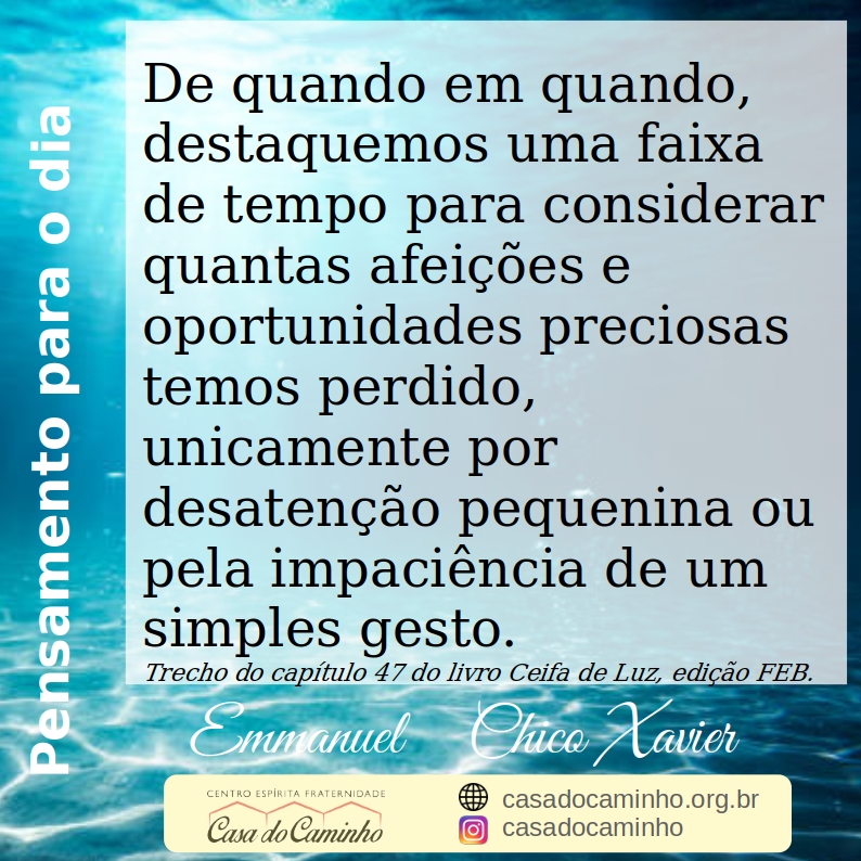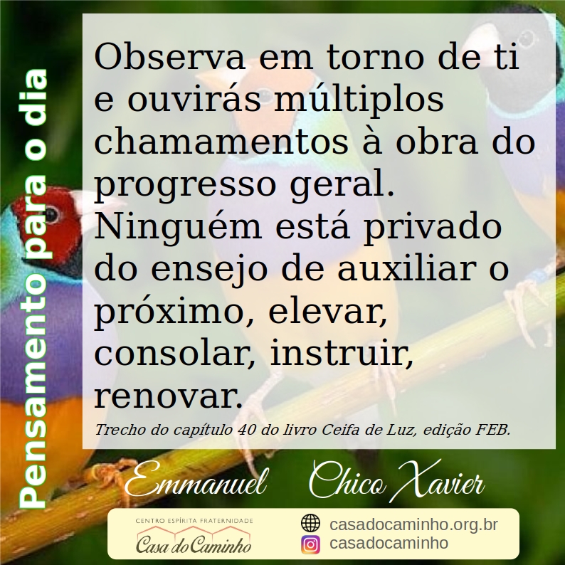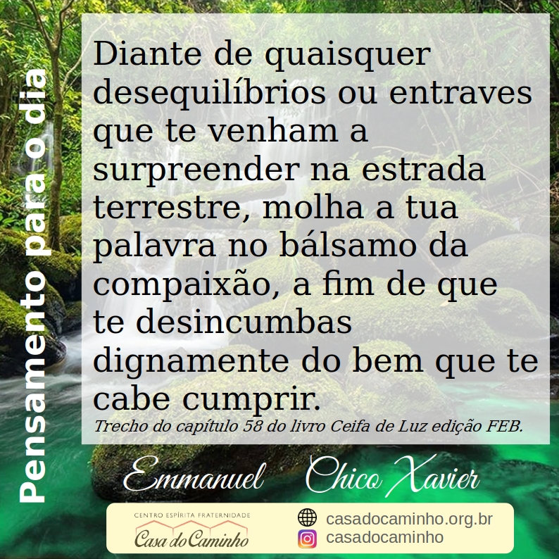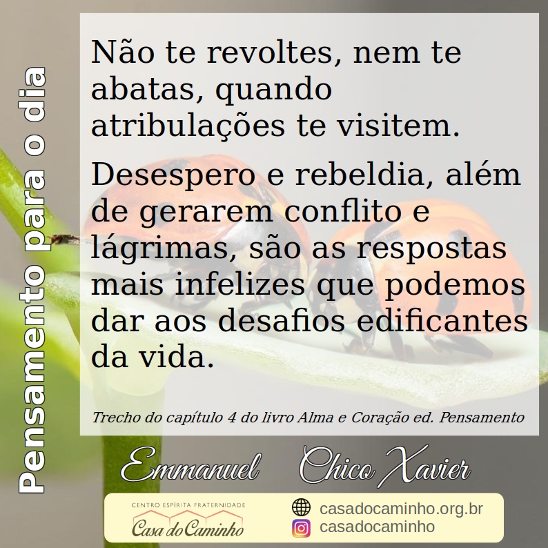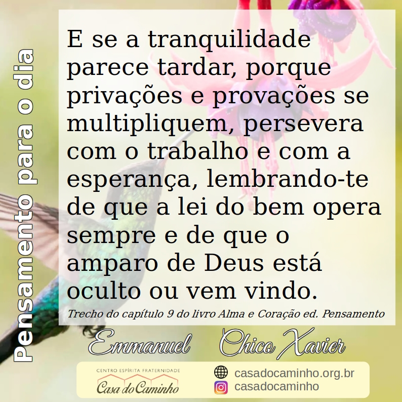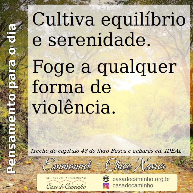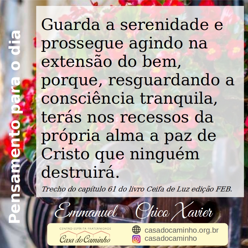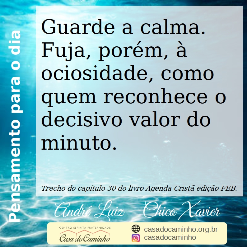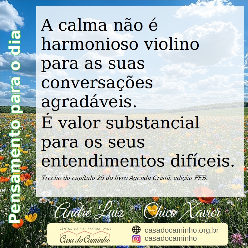 Capítulo 3 do livro Calma, de autoria do espírito Emmanuel e psicografia de Francisco C. Xavier, editora GEEM.